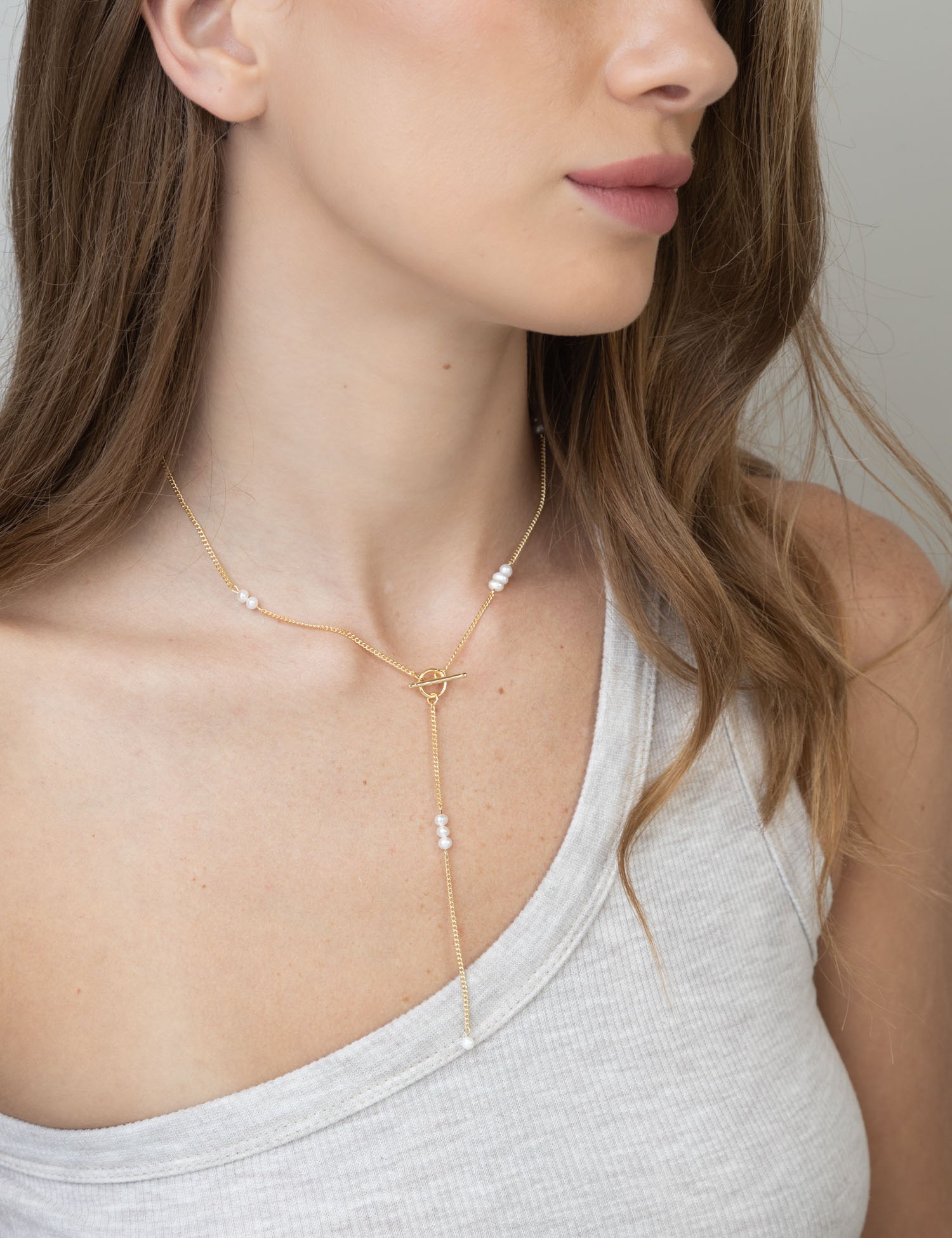 Fio com pendente, Banhado a Ouro, Pérola cultivada