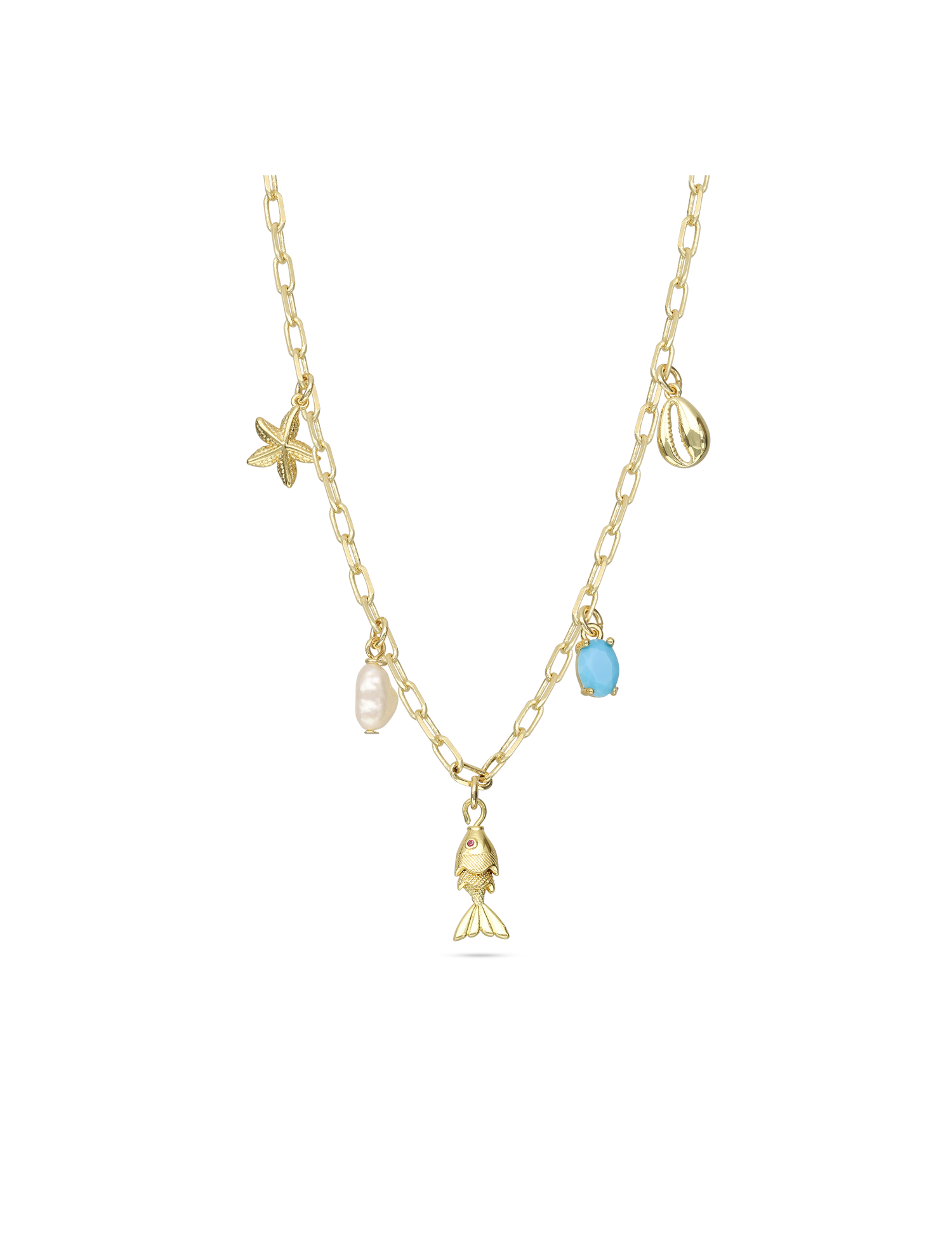 Fio com pendente, Banhado a Ouro, Zircónia de cultivo, Pérola cultivada, Vidro cristal
