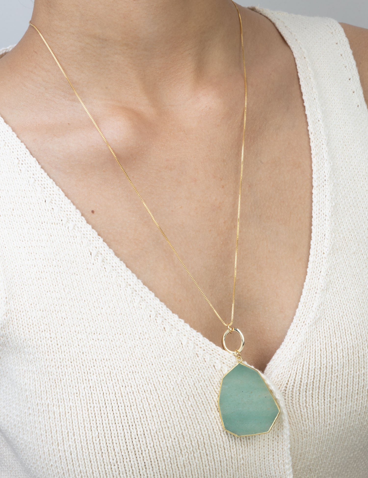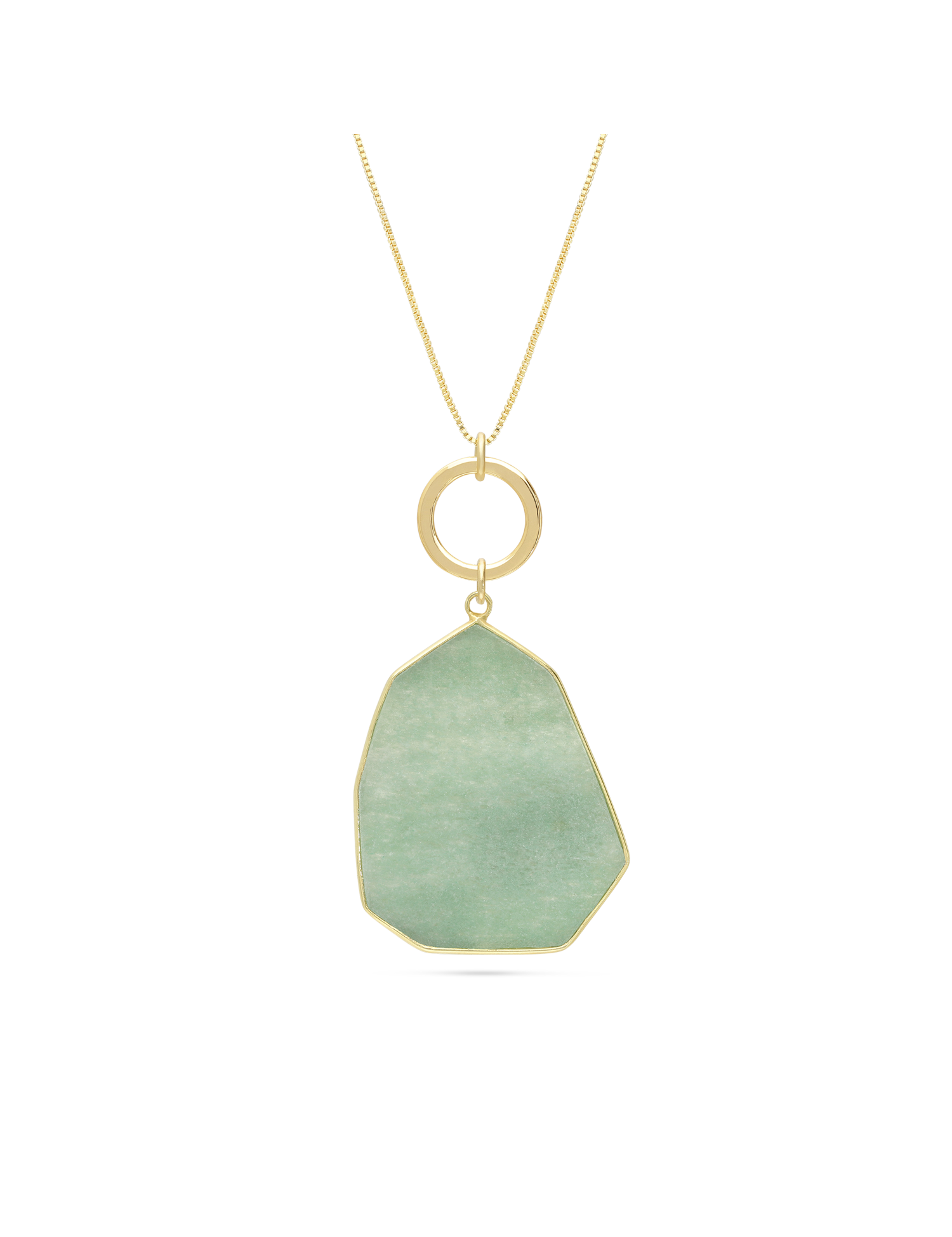 Fio com pendente, Banhado a Ouro, Amazonita de cultivo