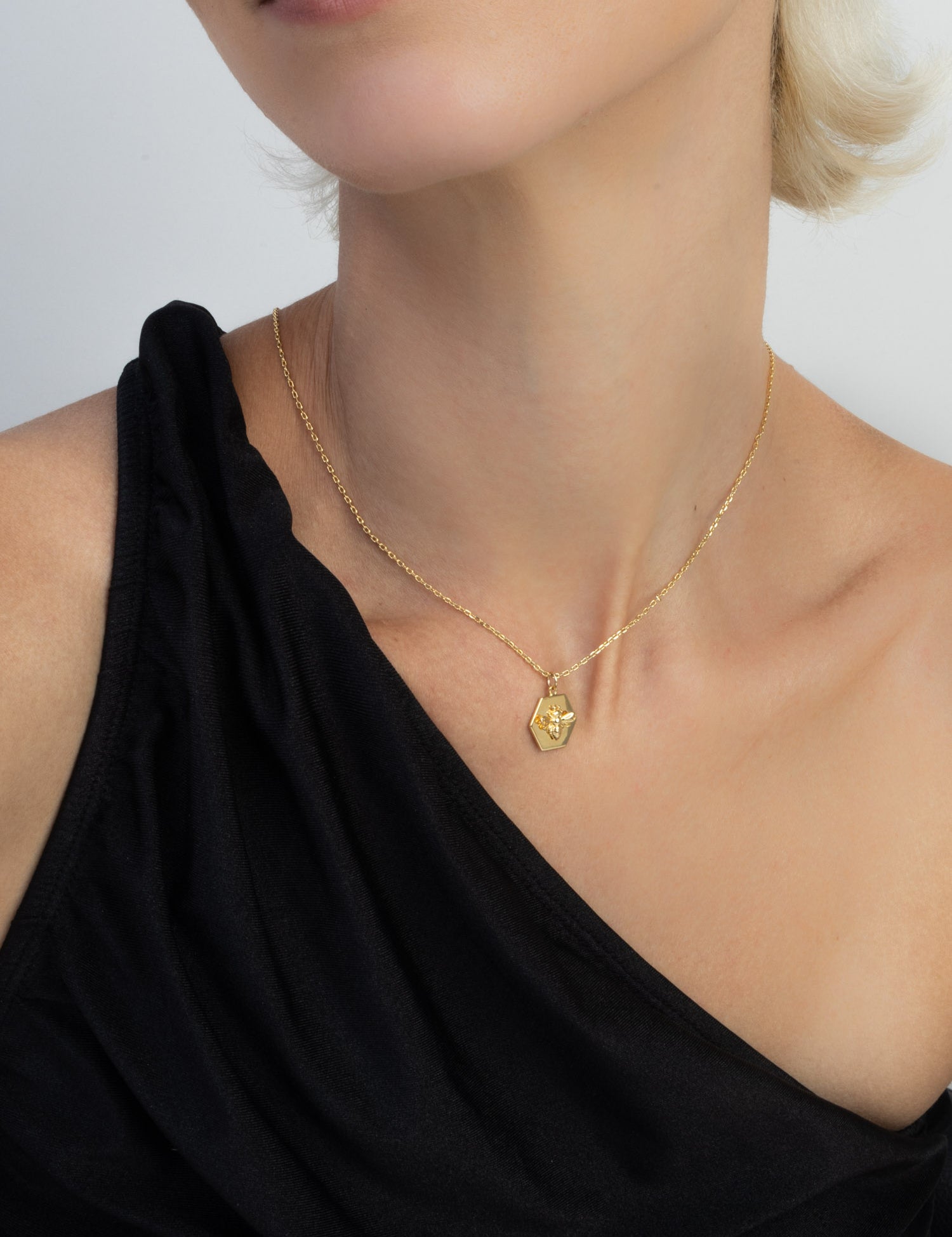 Fio com pendente, Banhado a Ouro, Zircónia de cultivo