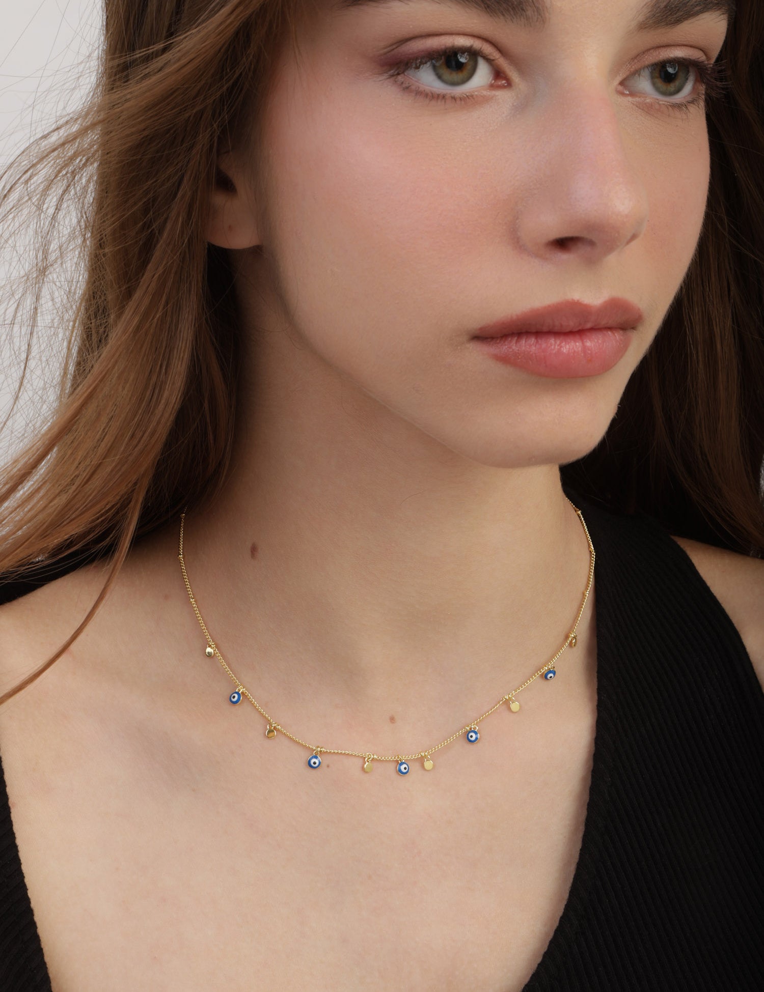 Colar de charms olho banhado a ouro com esmalte azul
