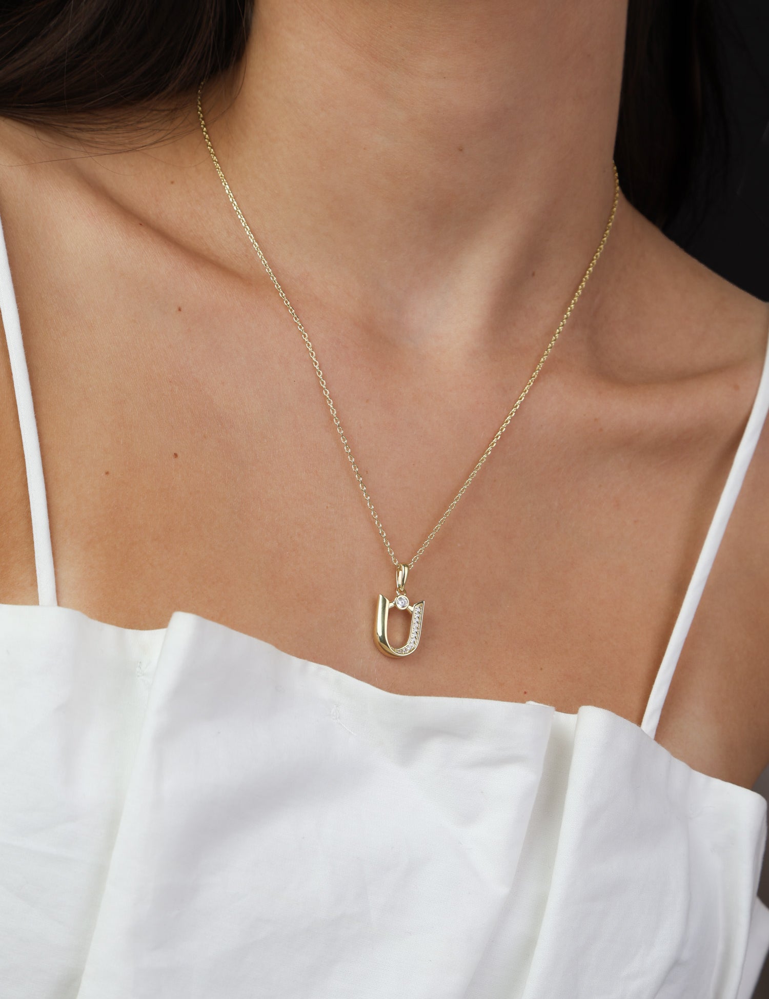 Fio com pendente banhado a ouro com zircónia