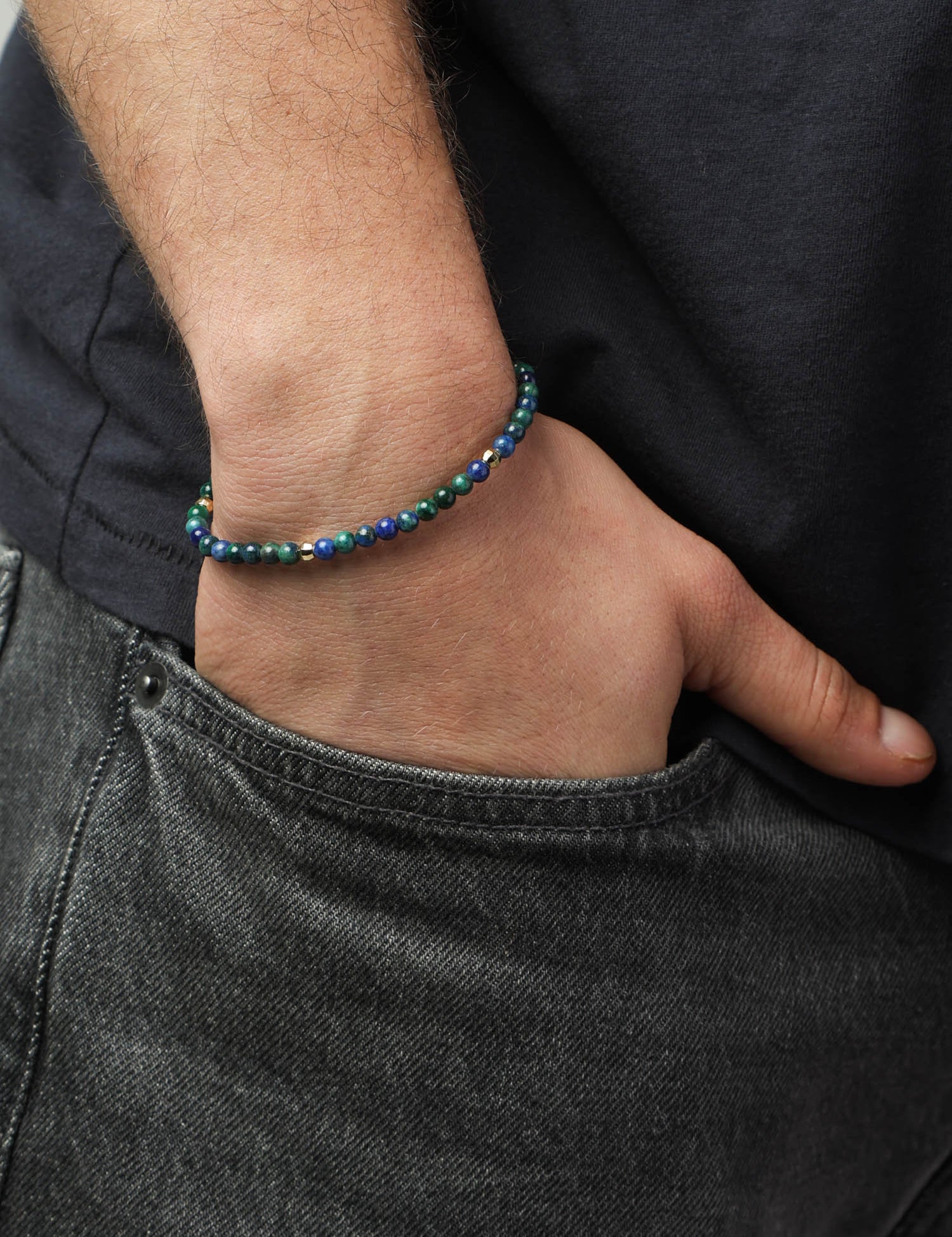 Pulseira Masculina, Banhado a Ouro, Azurita de cultivo