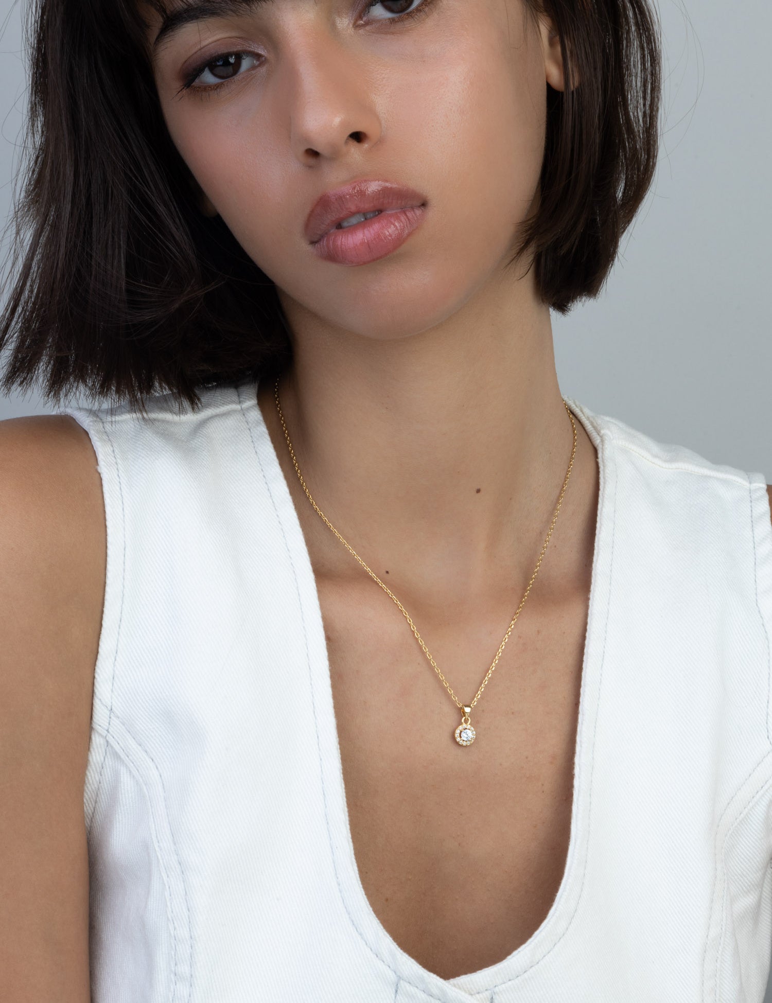Fio com pendente banhado a ouro com zircónia