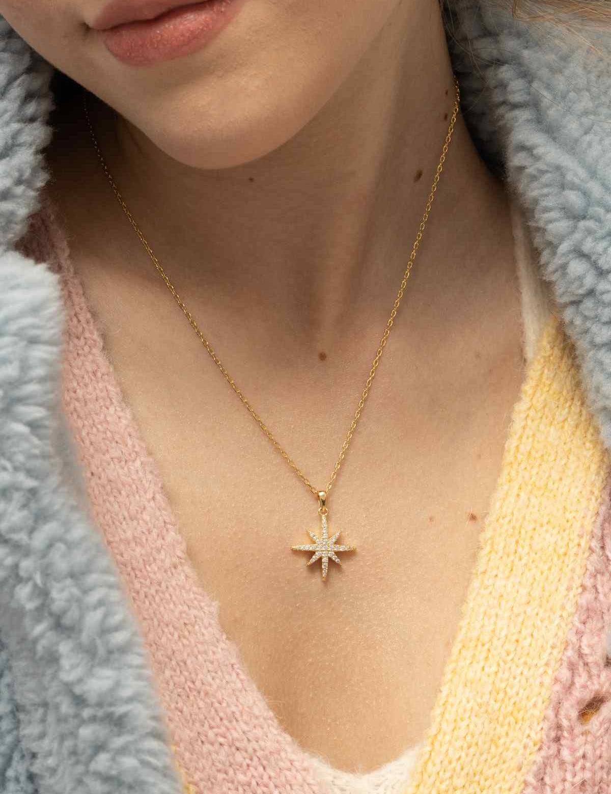 Fio com pendente estrela banhado a ouro com zircónia
