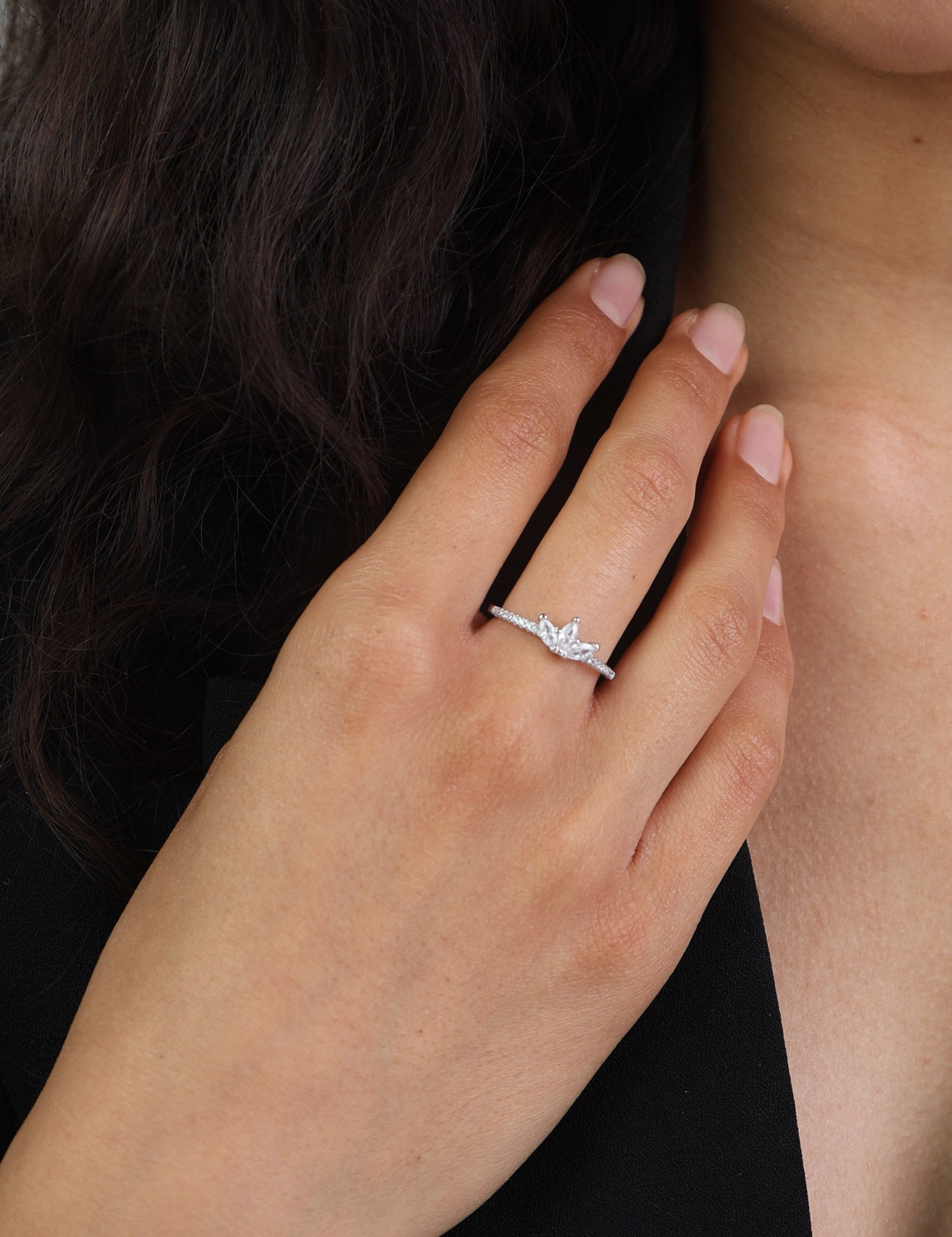 Anel flor em prata 925 com zircónias