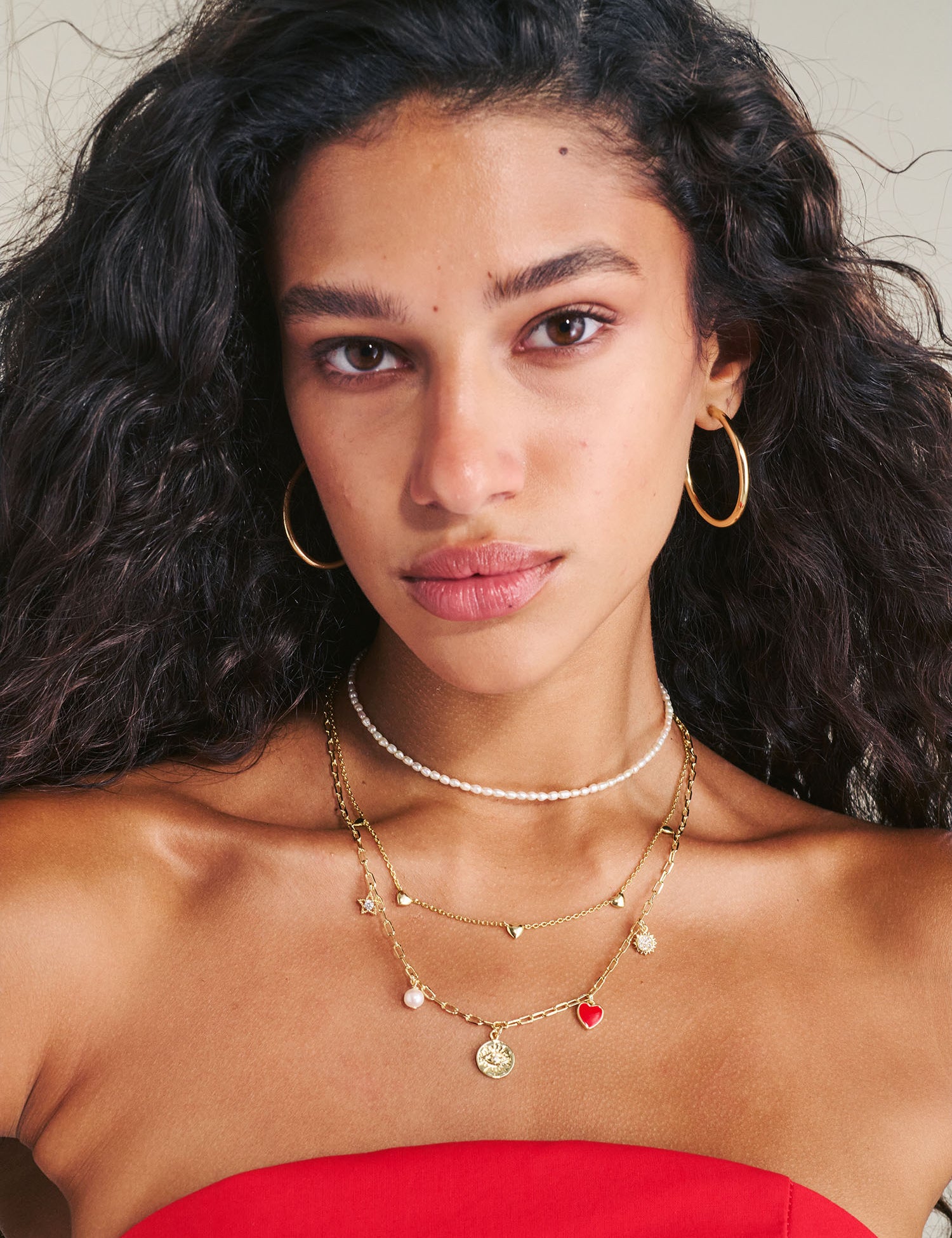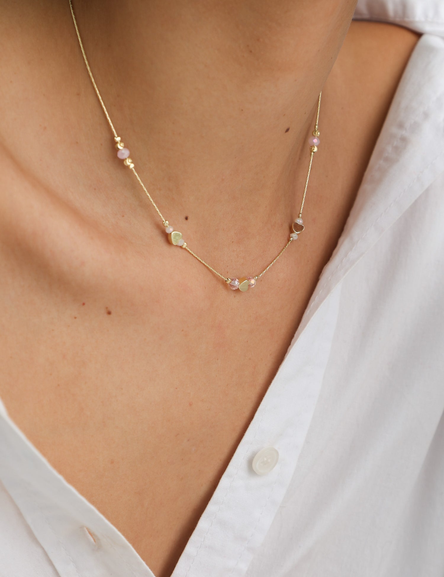 Colar com detalhes de corações banhado a ouro