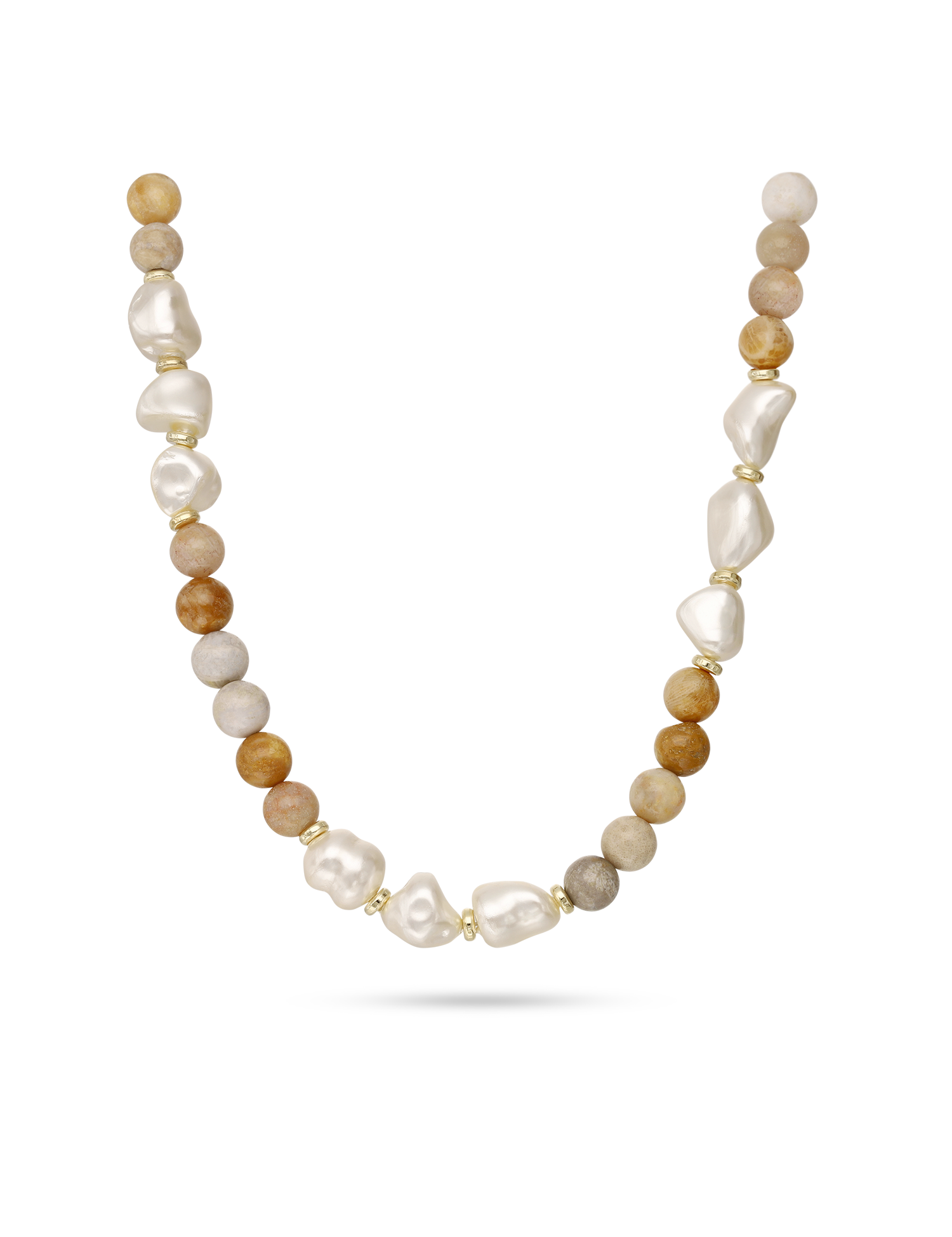 Colar de pedra, Banhado a Ouro, Coral de cultivo, Pérola cultivada
