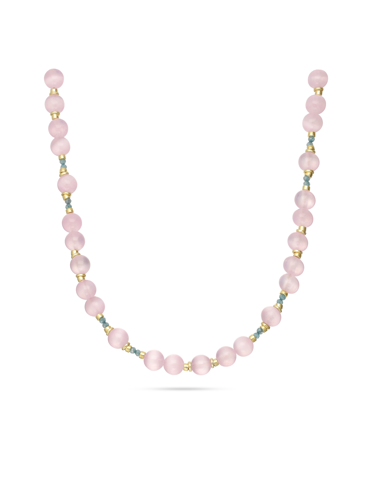 Colar de pedras banhado a ouro com zircónias azuis e cristais rosa
