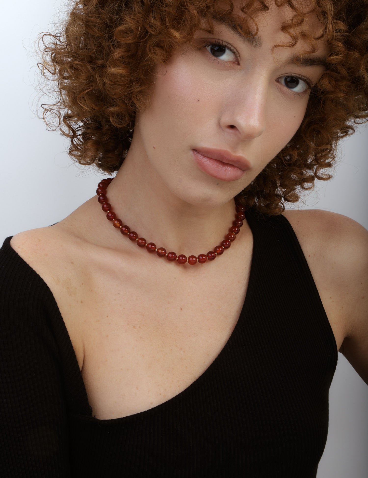 Colar choker, Banhado a Ouro, Cornalina de cultivo