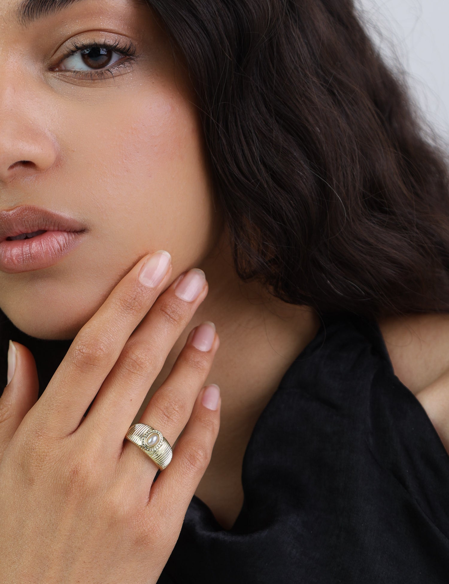 Anel Delicado, Banhado a Ouro, Pérola cultivada