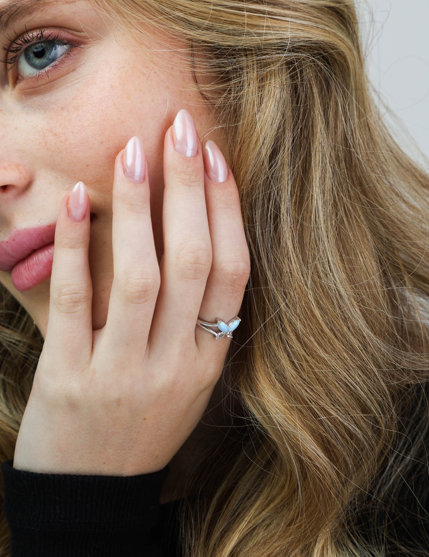 Anel Delicado, Prata de lei 925, Zircónia de cultivo, Opala de cultivo