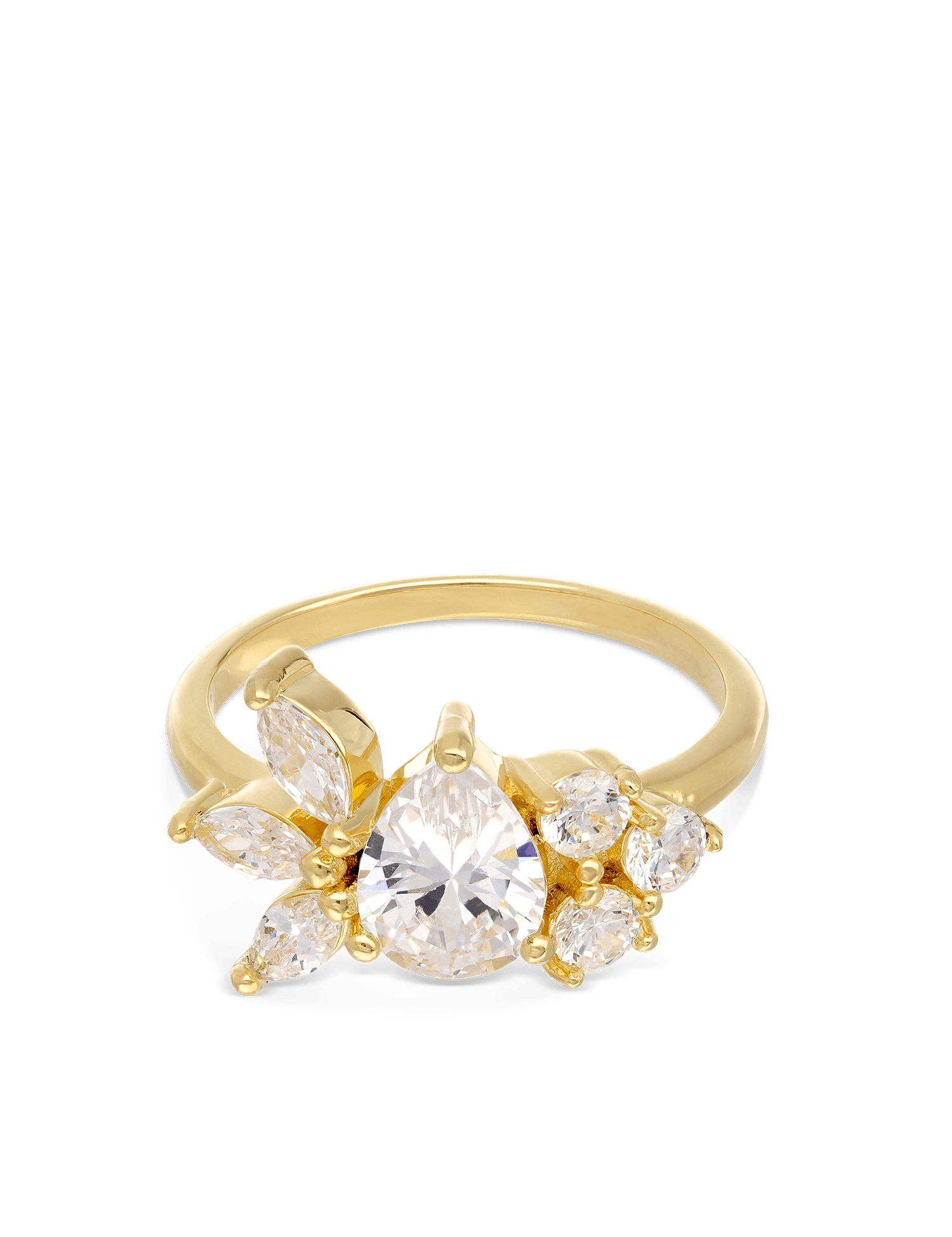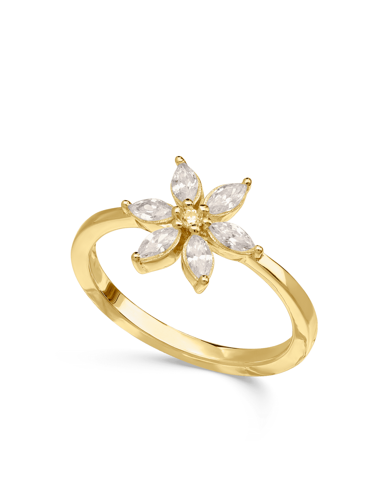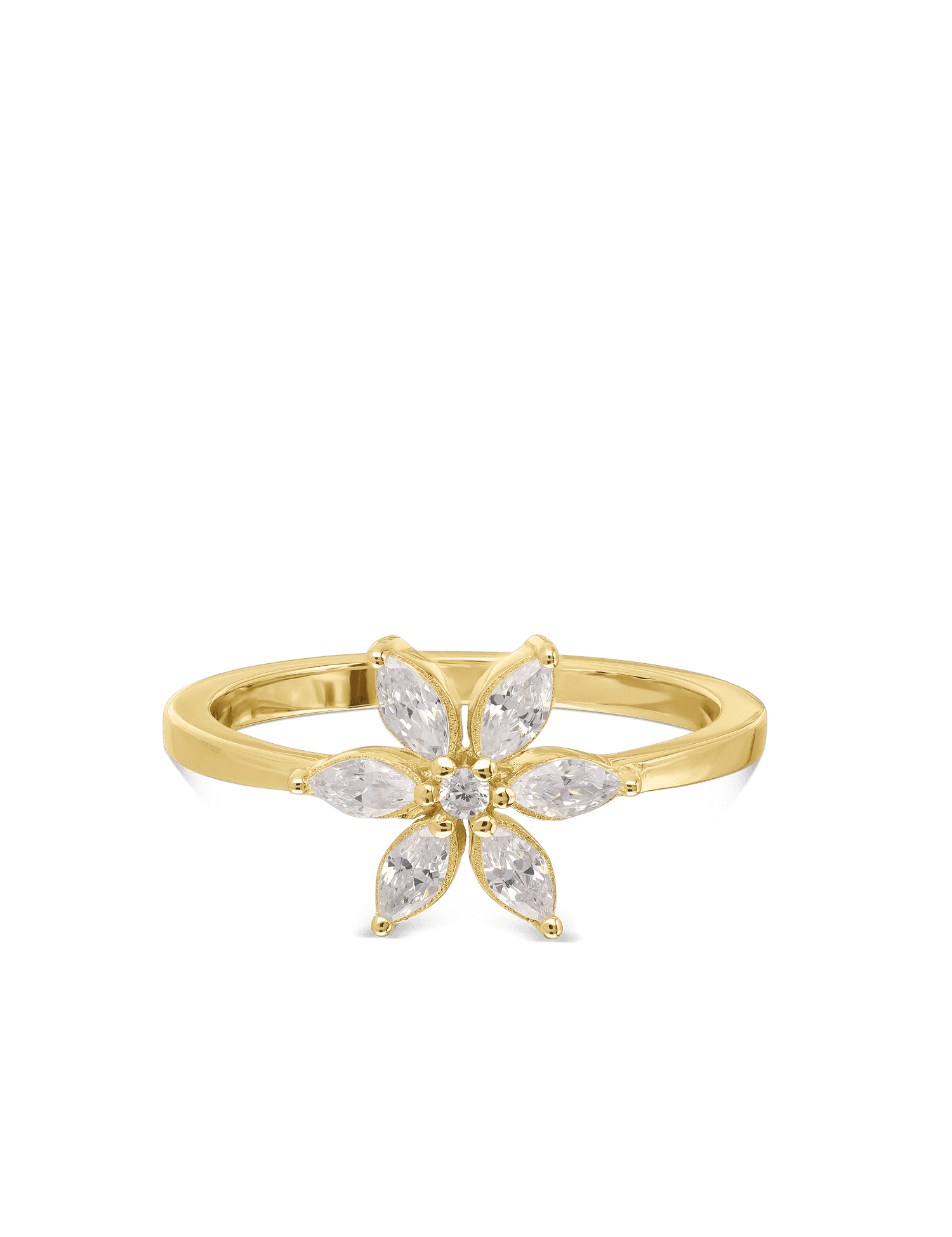 Anel flor banhado a ouro com zircónias