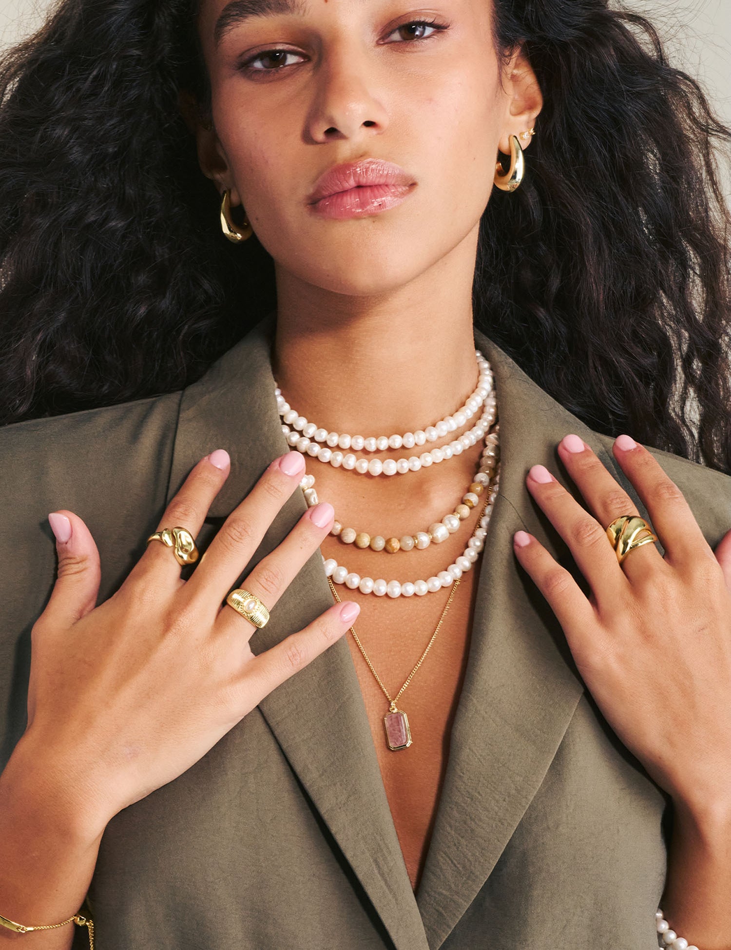 Argolas banhadas a ouro com aventurina e pérolas