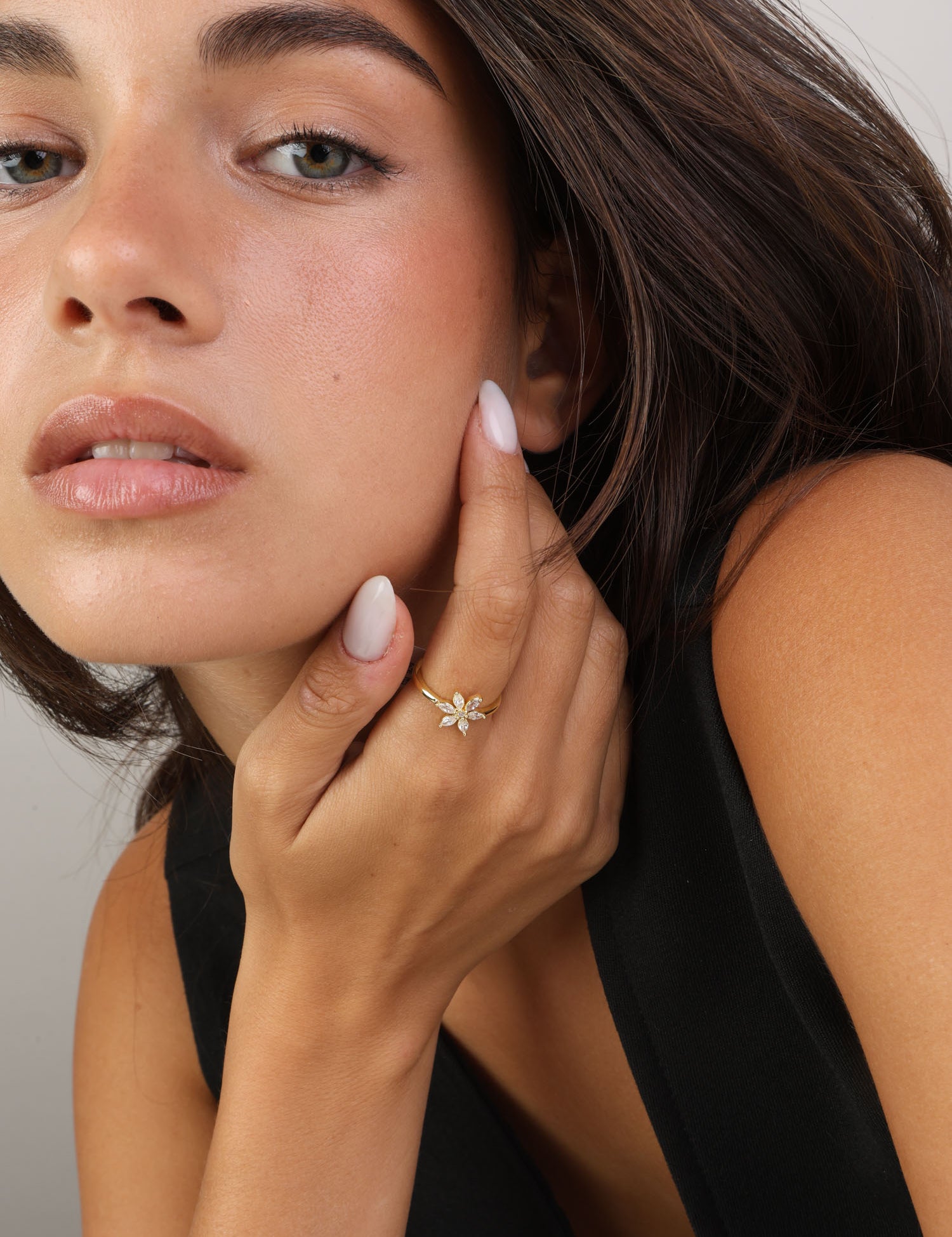 Anel flor em prata 925 com zircónias