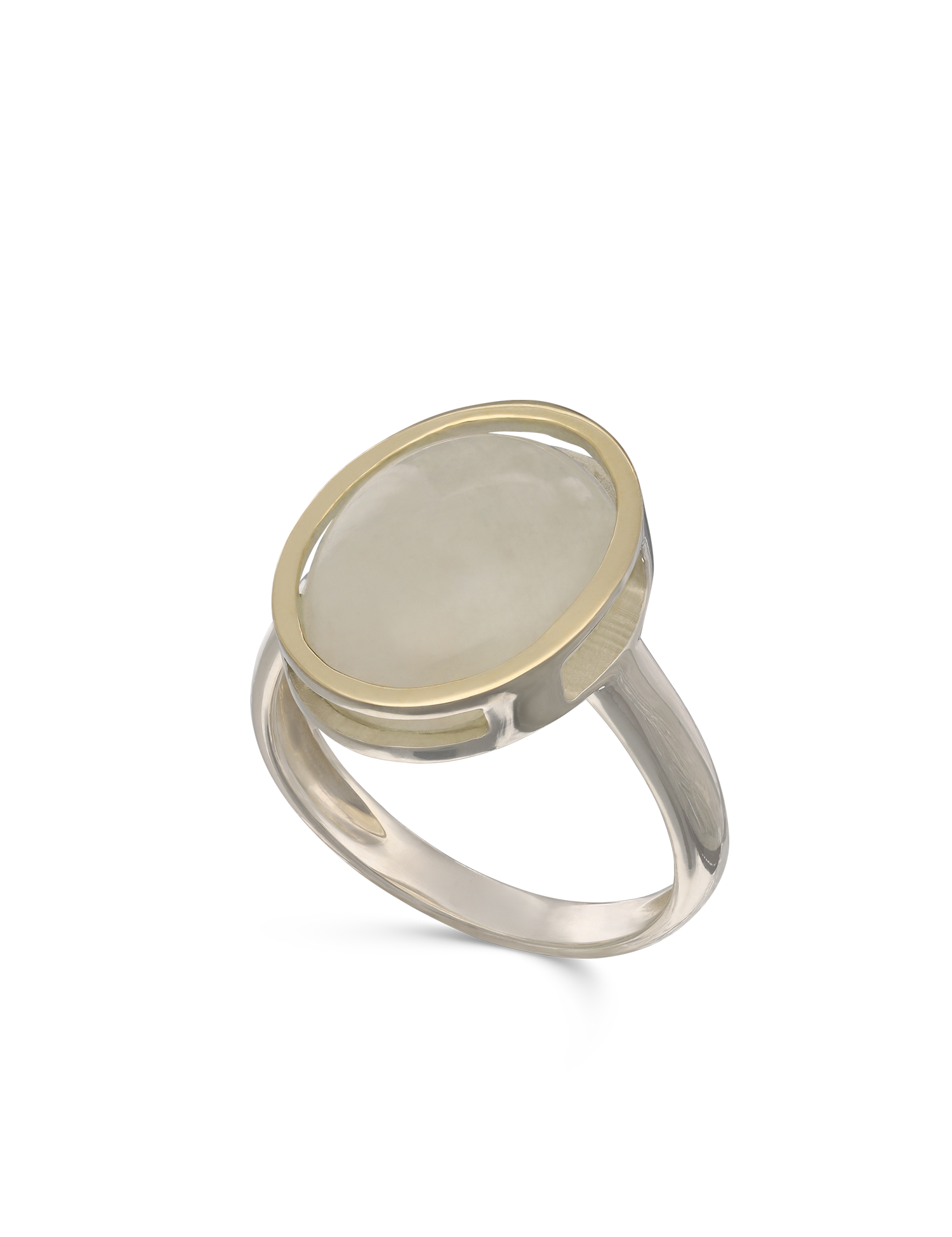 Anel em prata e ouro 9K com pedra da lua