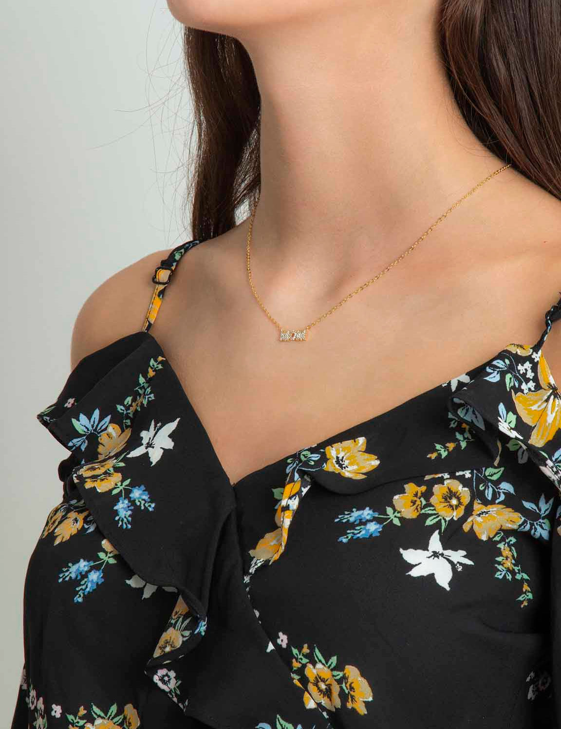 Fio com pendente "MOM" banhado a ouro com zircónias
