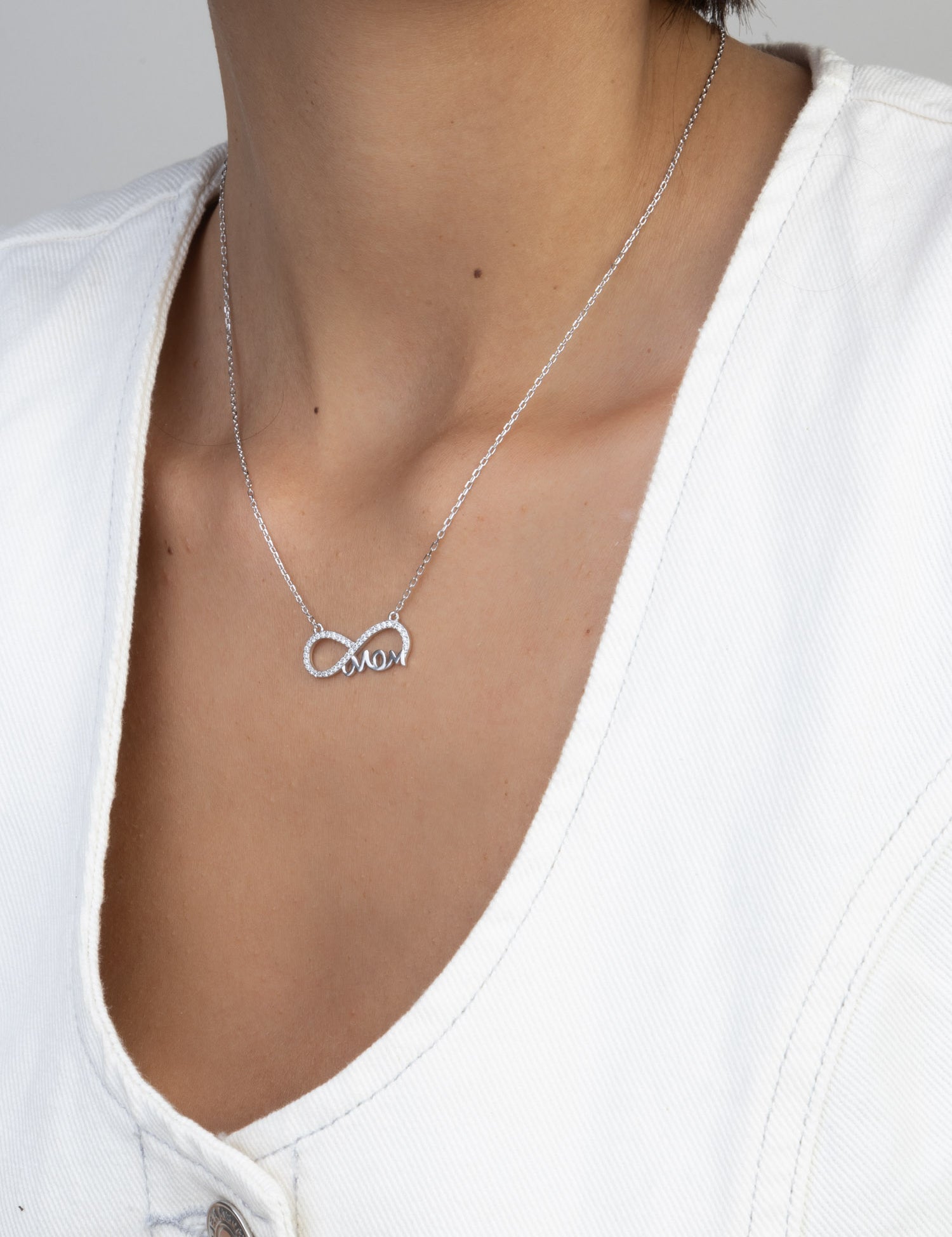 Fio com pendente "MOM" infinito em prata 925 com zircónias
