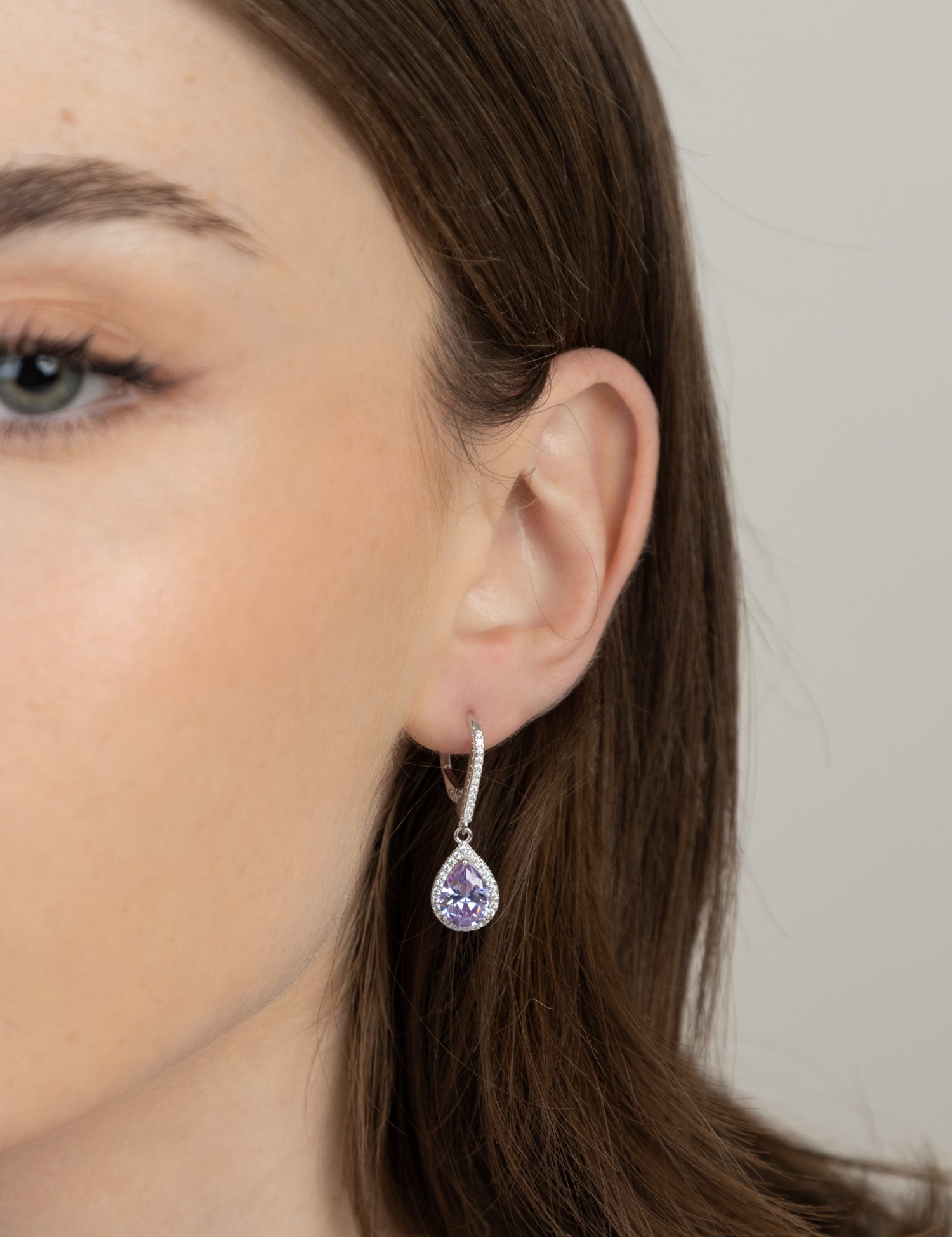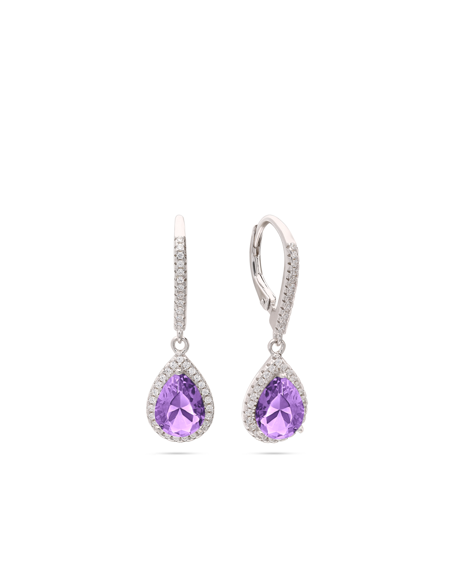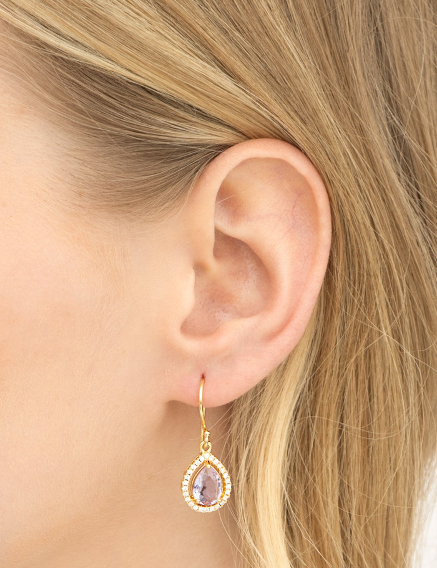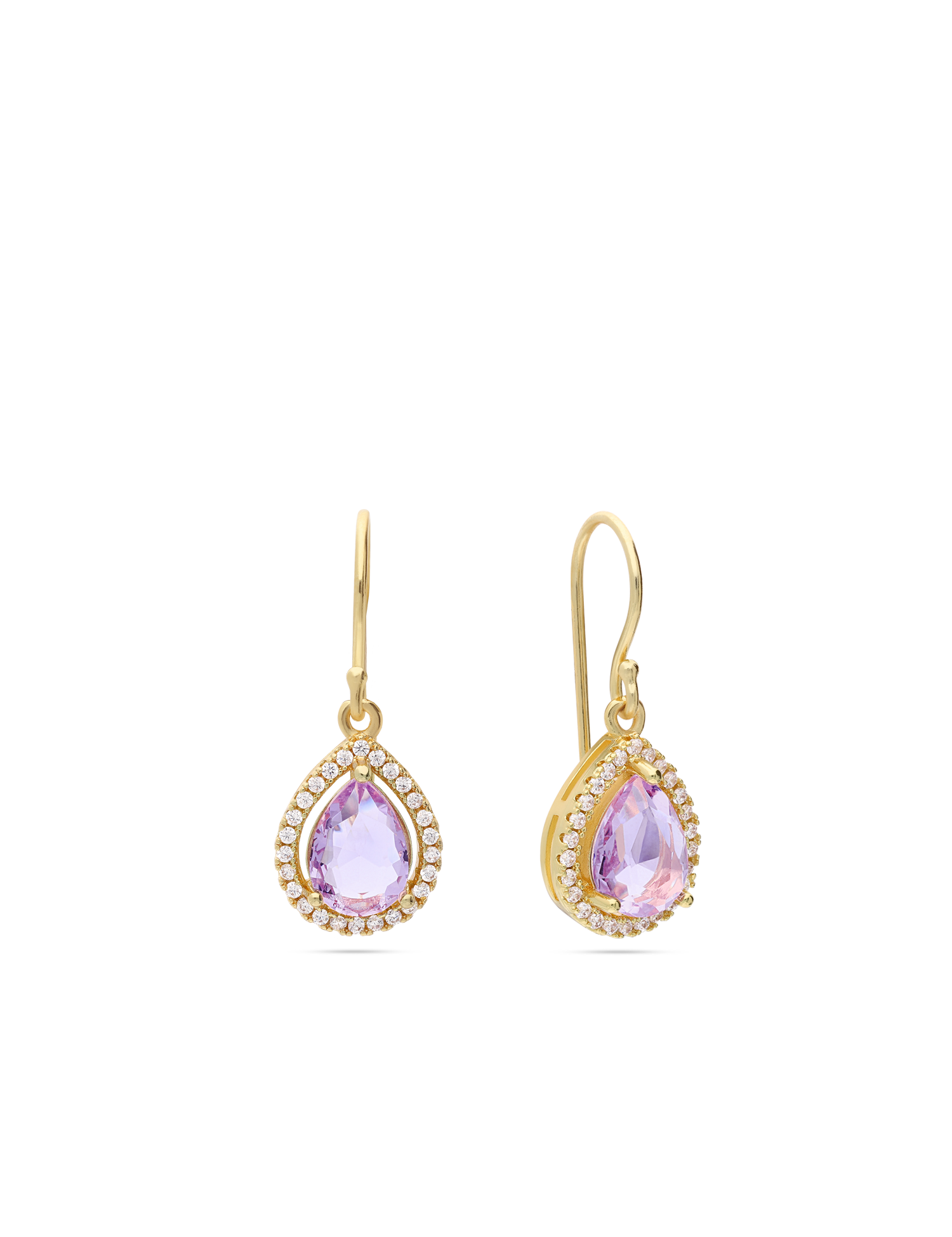Pendentes banhados a ouro com zircónia e vidro cristal violeta