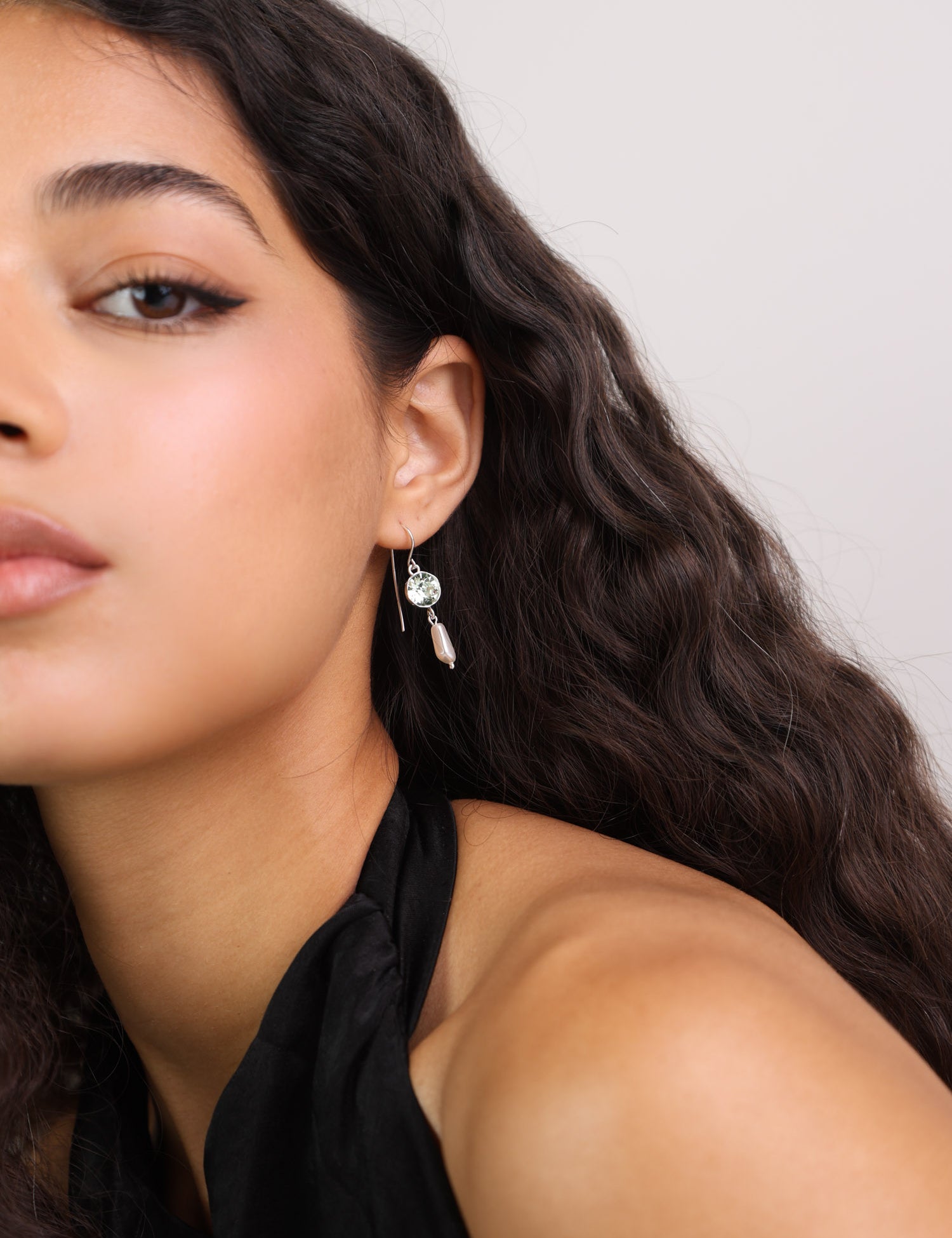 Pendentes em prata com pérolas e cristais Swarovski coloridos