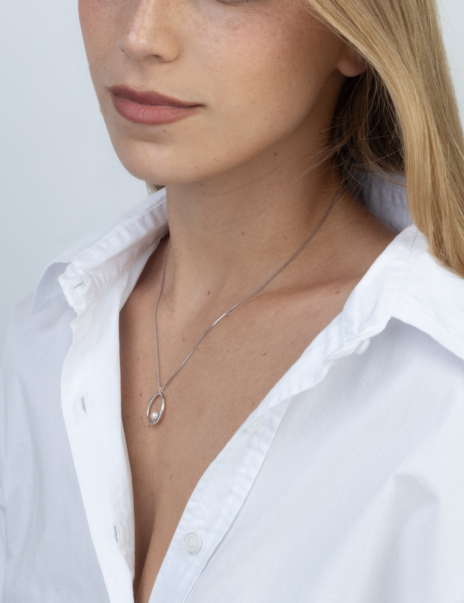 Fio com pendente, Prata de lei 925, Pérola cultivada