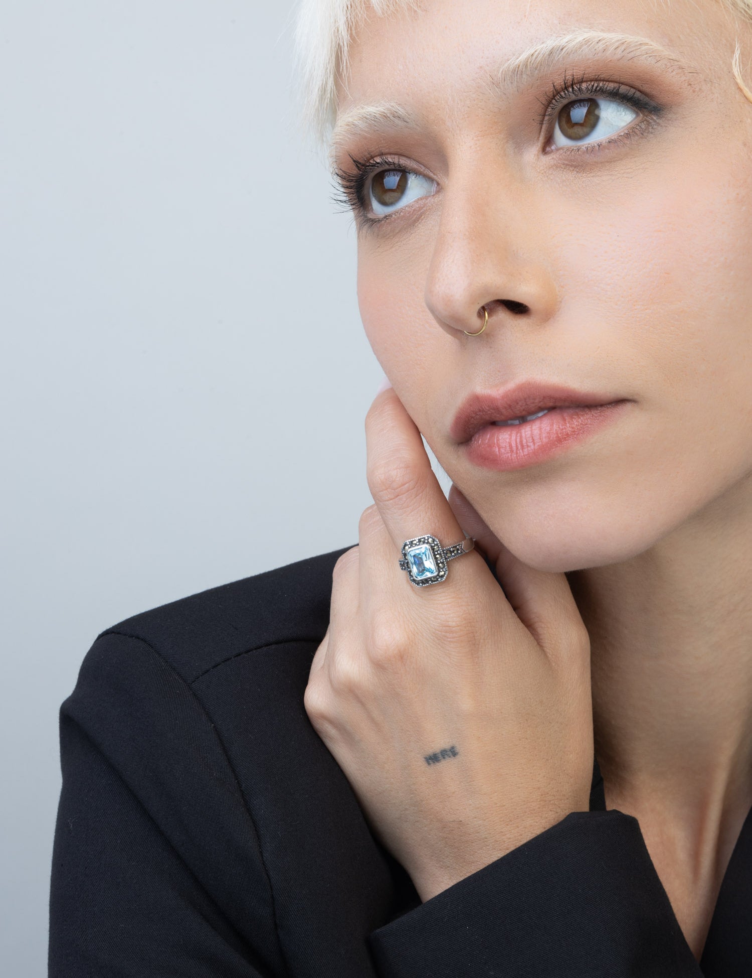 Anel Delicado, Prata de lei 925, Zircónia de cultivo, Marcassita de cultivo