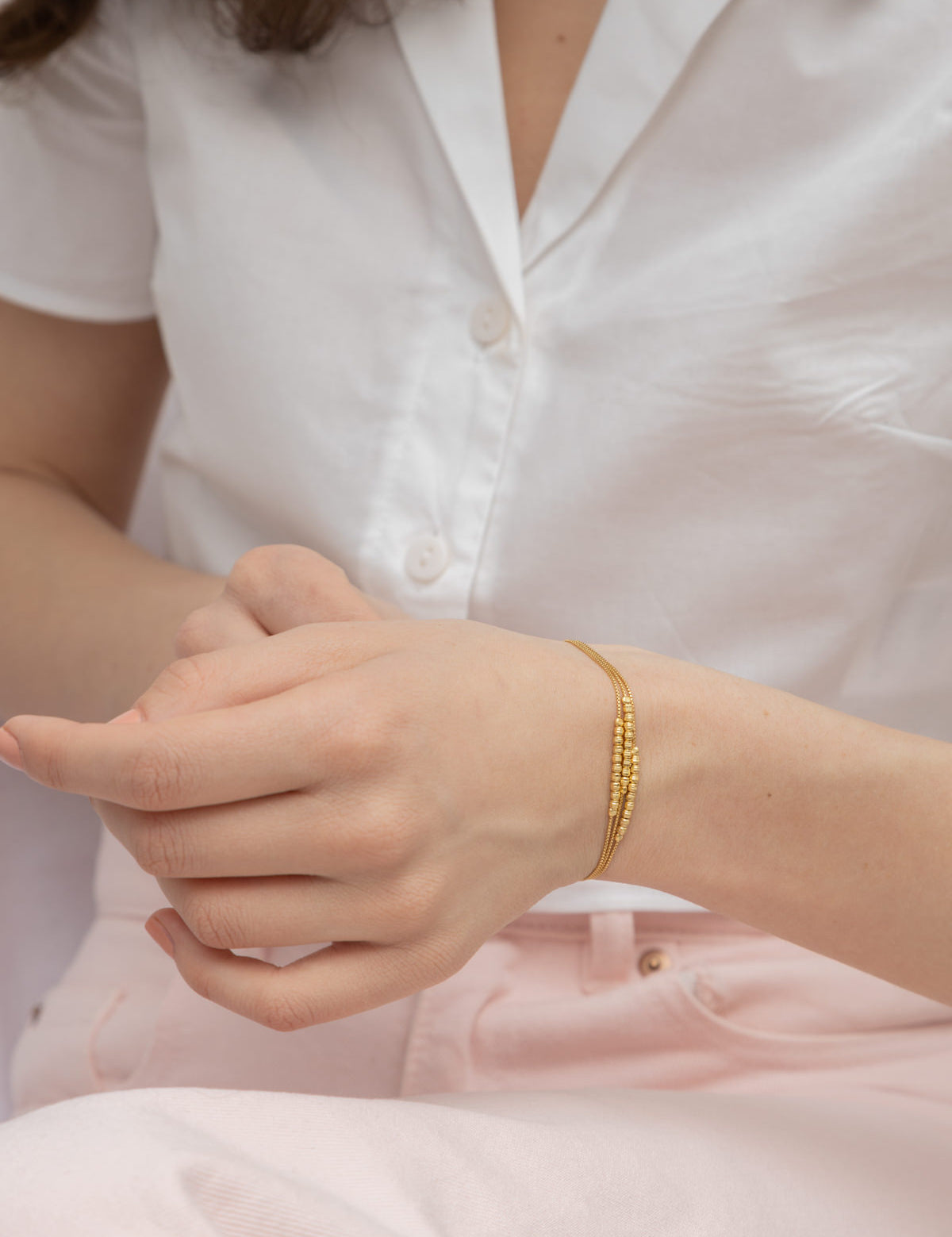 Pulseira delicada banhada a ouro com pérolas