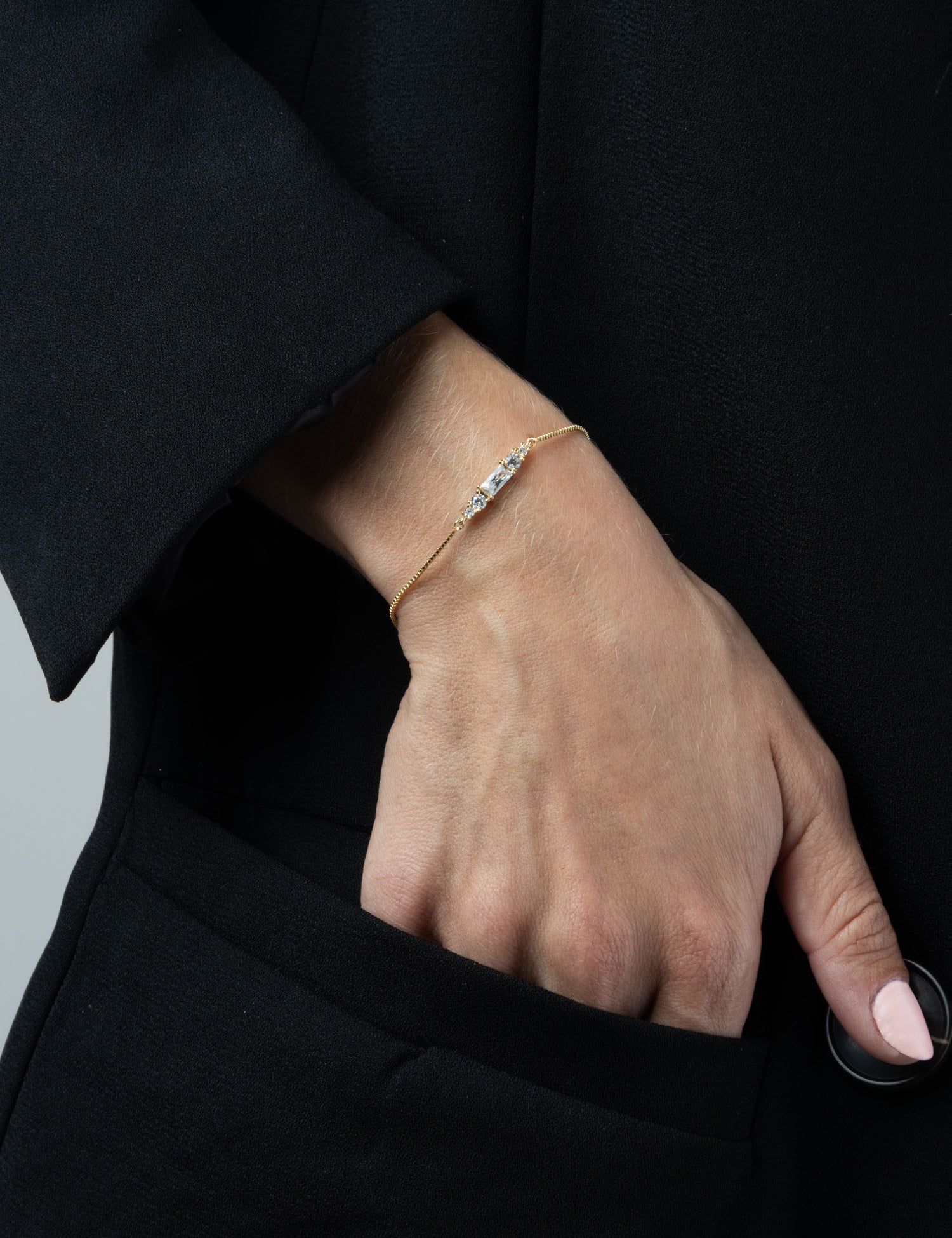 Pulseira delicada banhada a ouro com zircónia