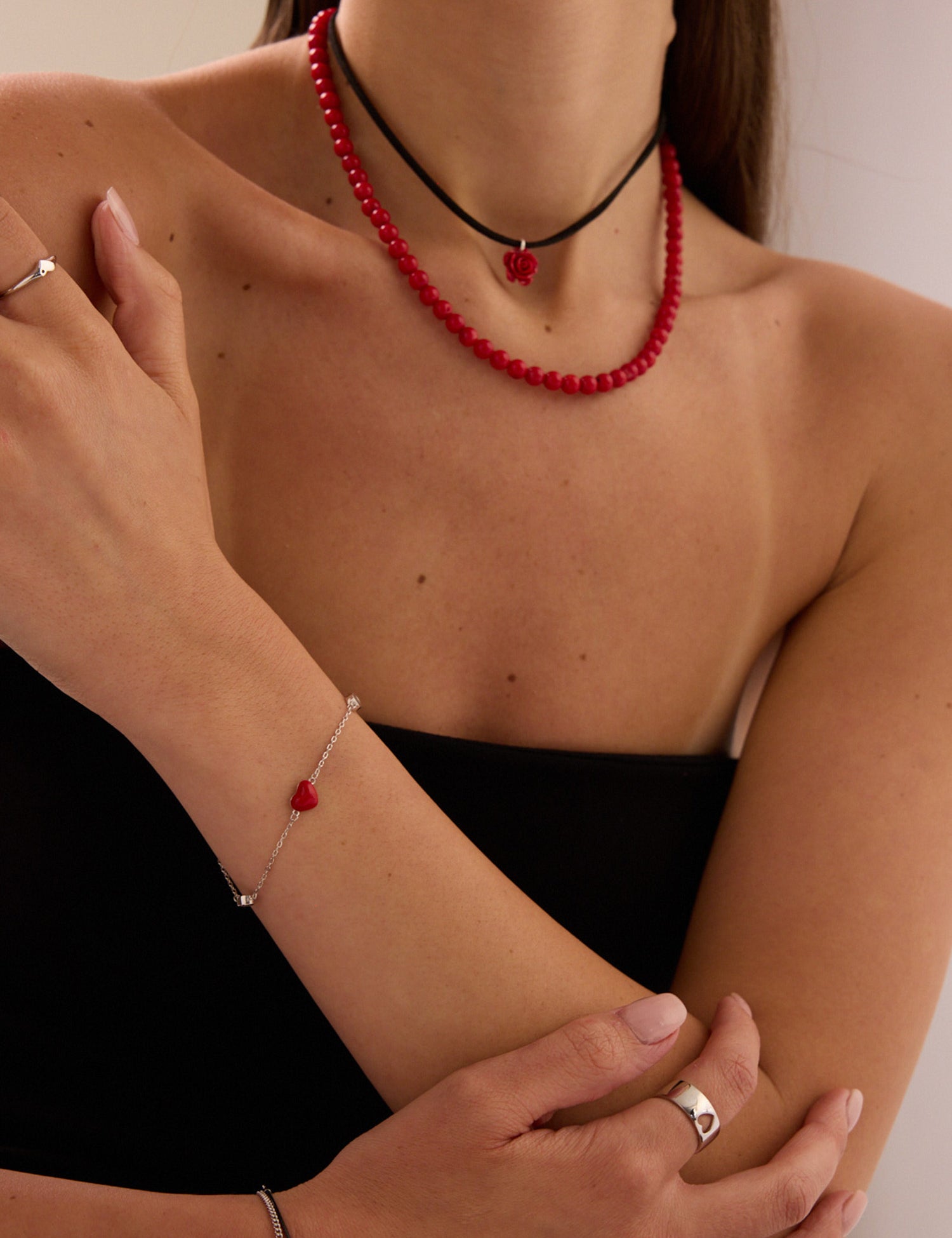 Pulseira coração em prata 925 com zircónia e esmalte