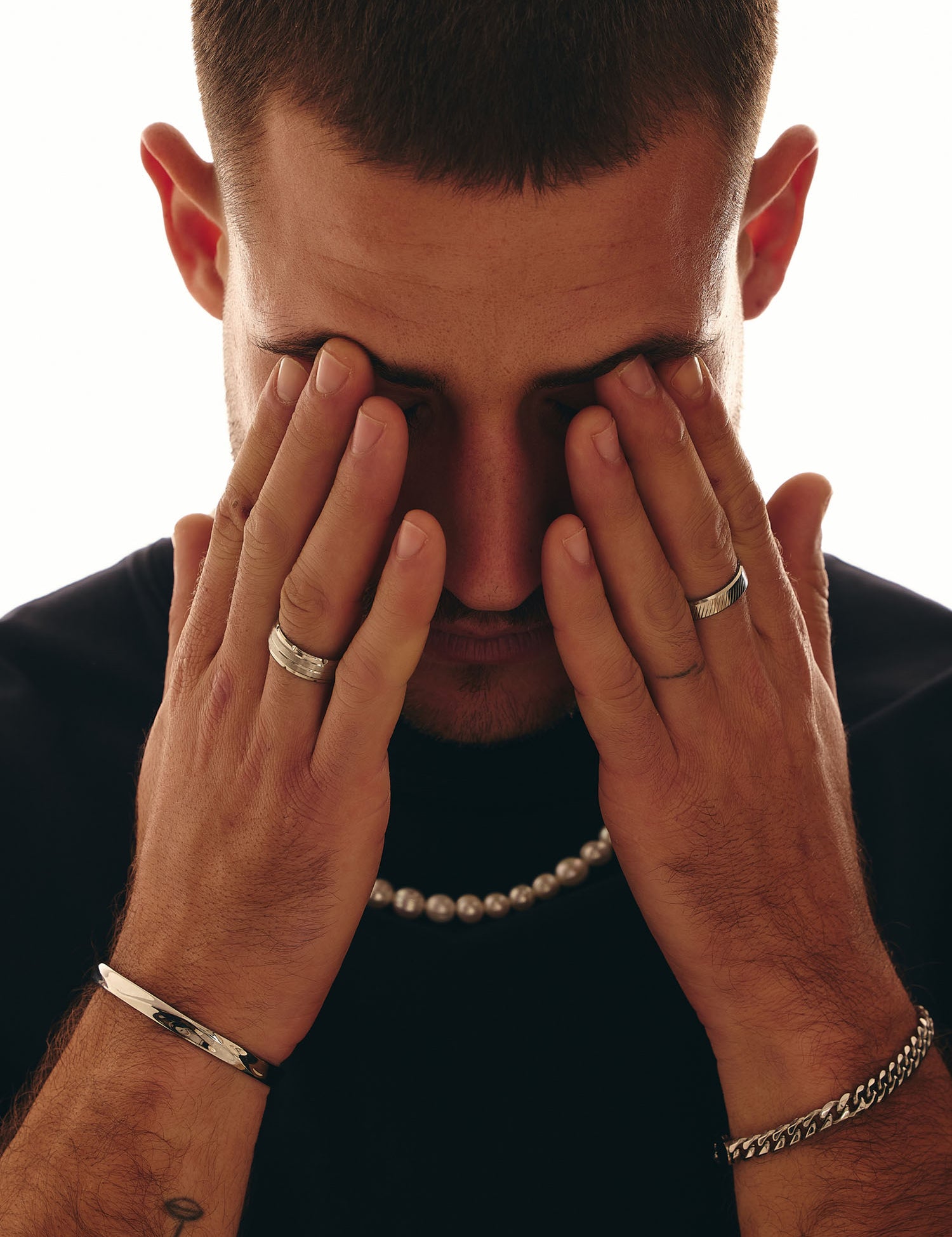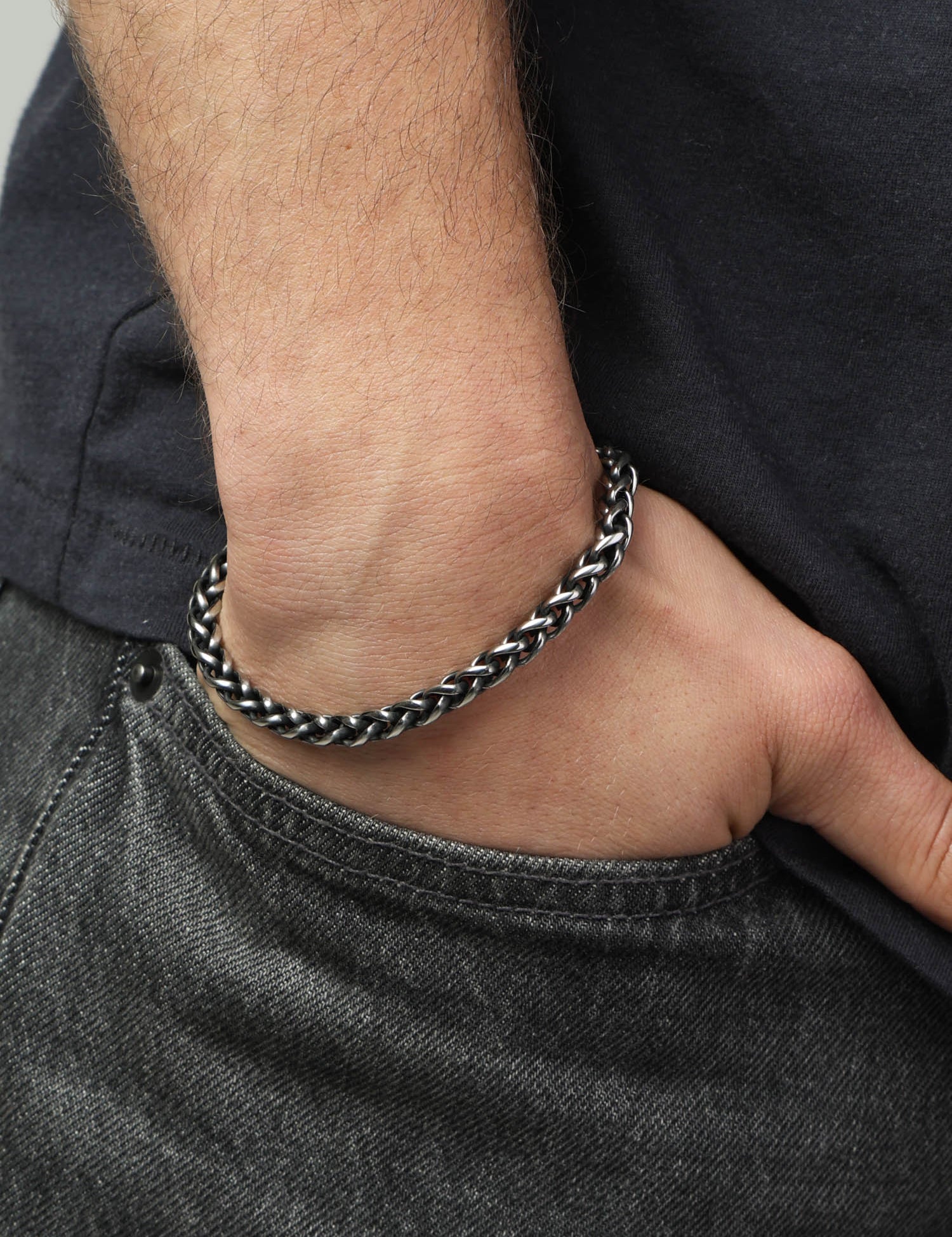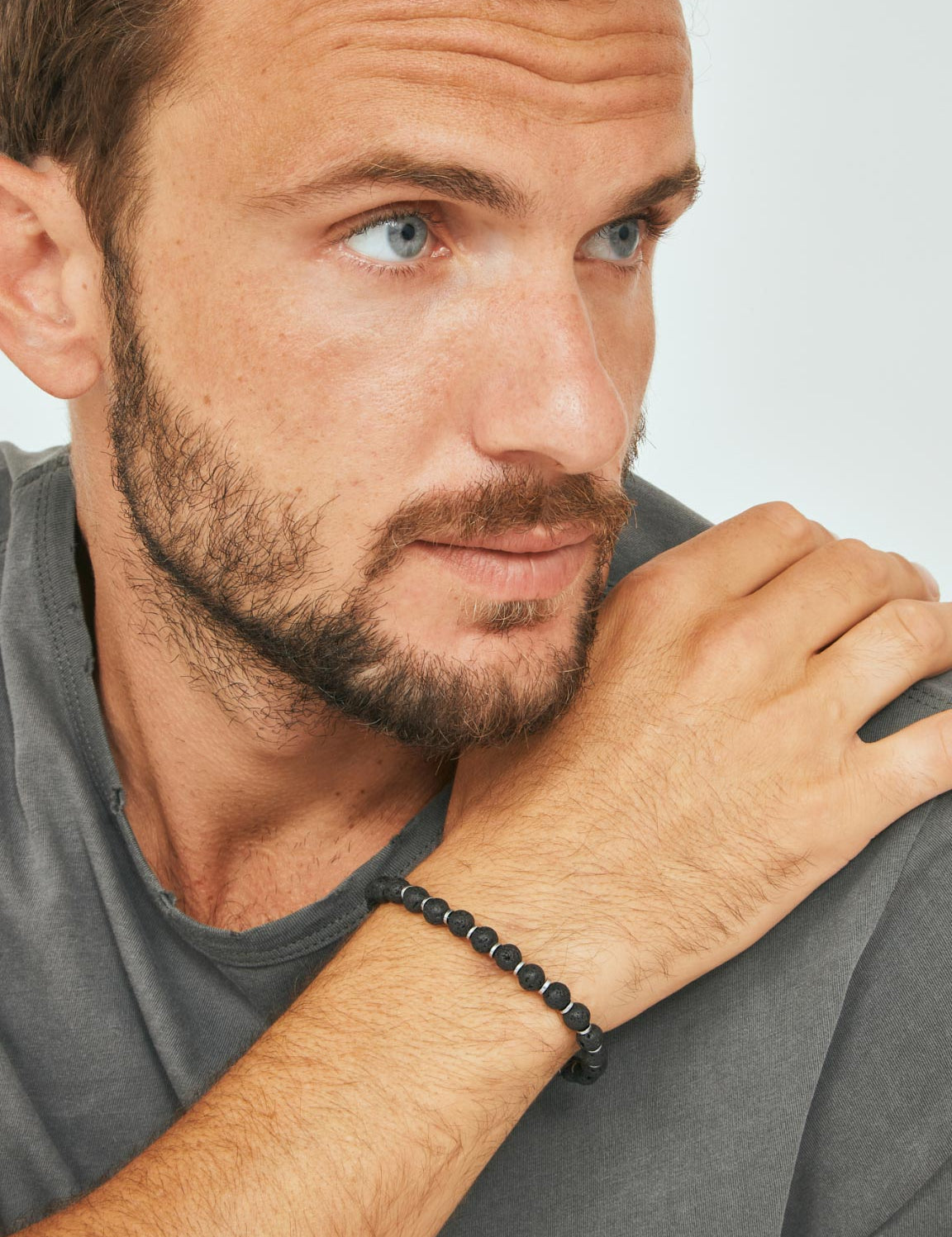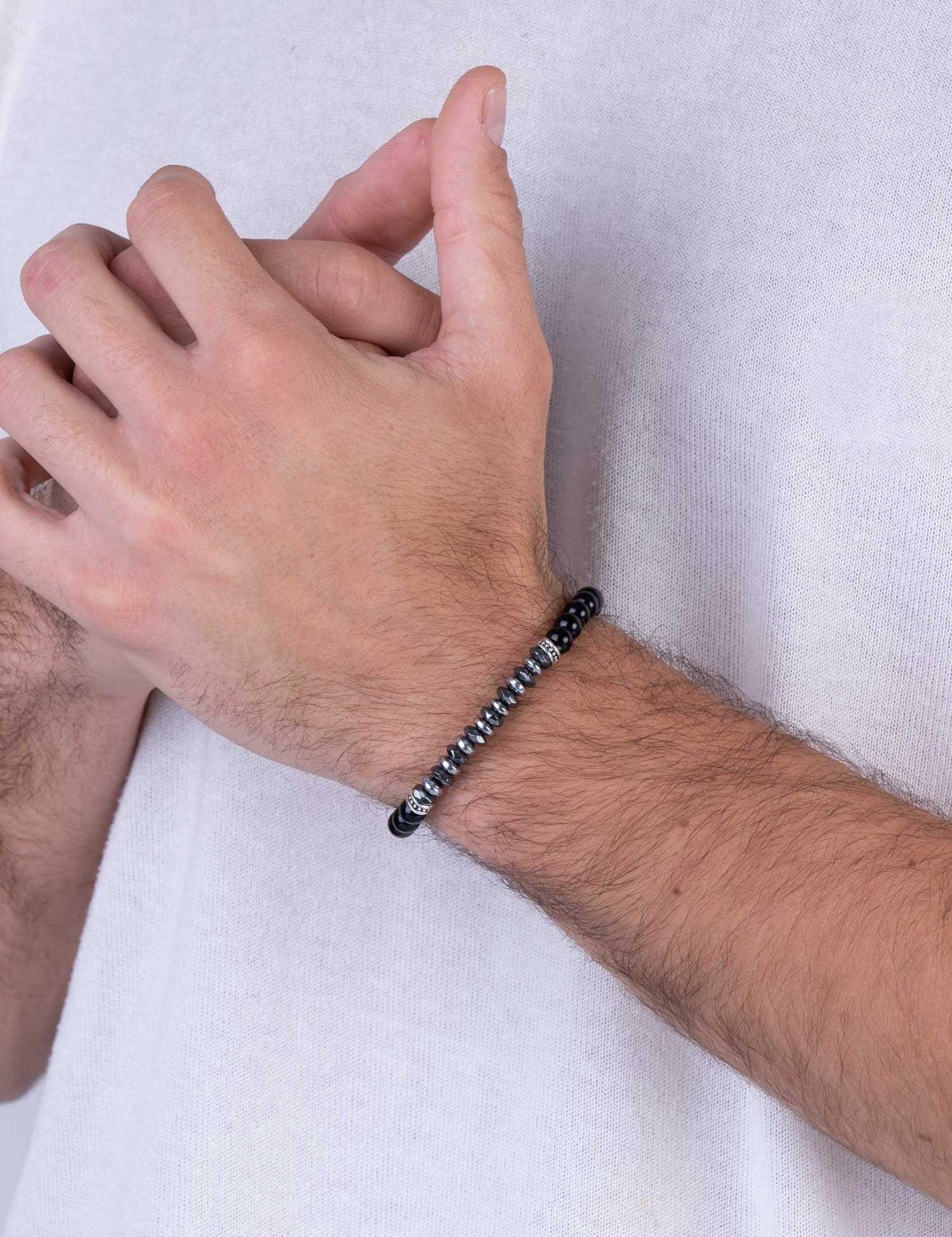 Pulseira masculina em aço inoxidável com ónix e hematite