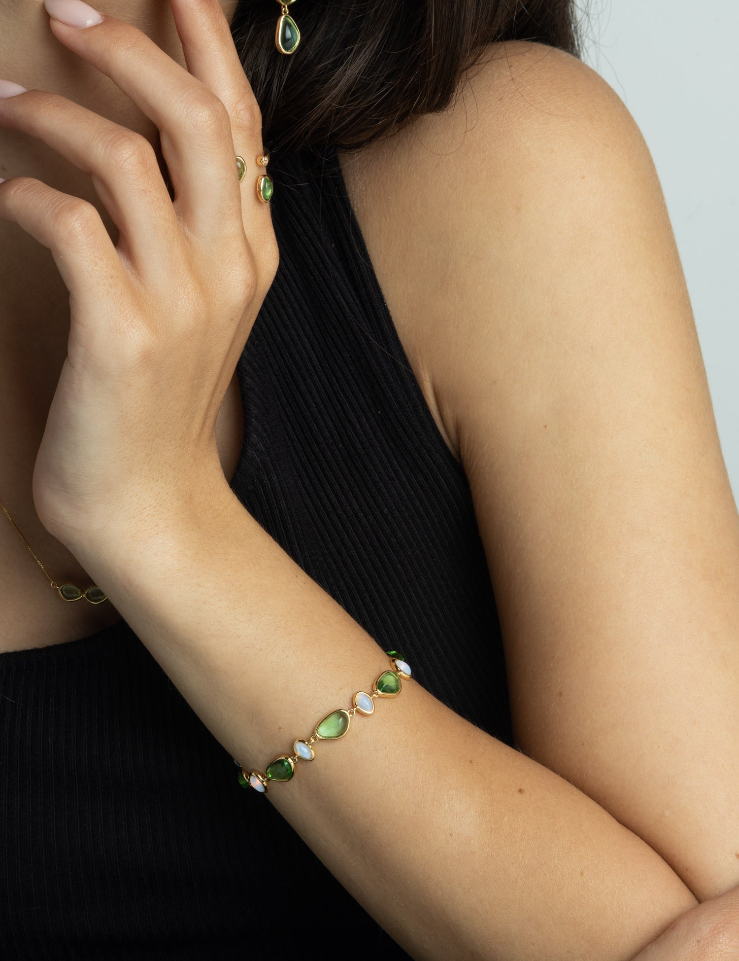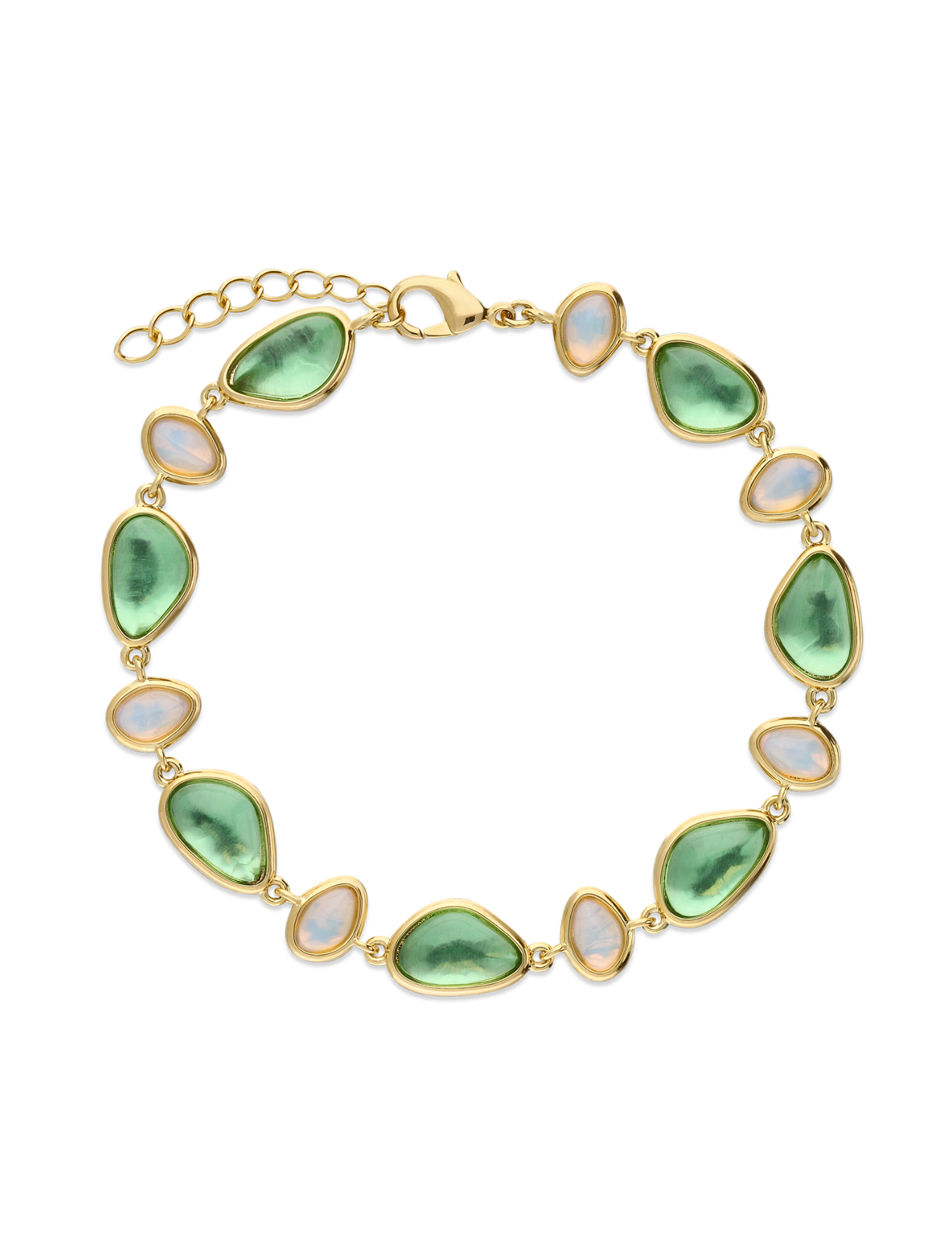 Pulseira temática banhada a ouro com zircónia e vidro cristal castanho
