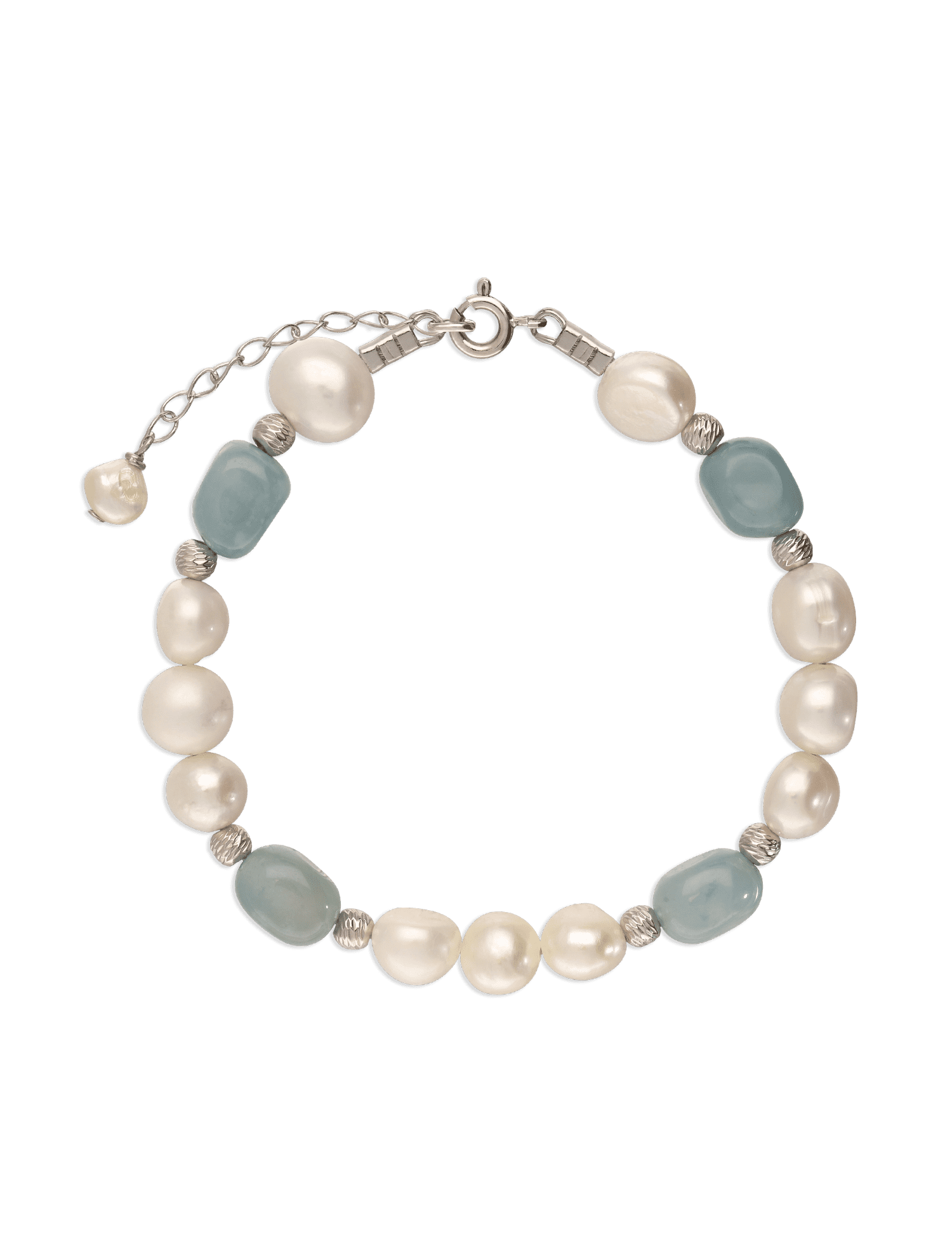 Pulseira para tornozelo em prata 925 com vidro cristal e pérola