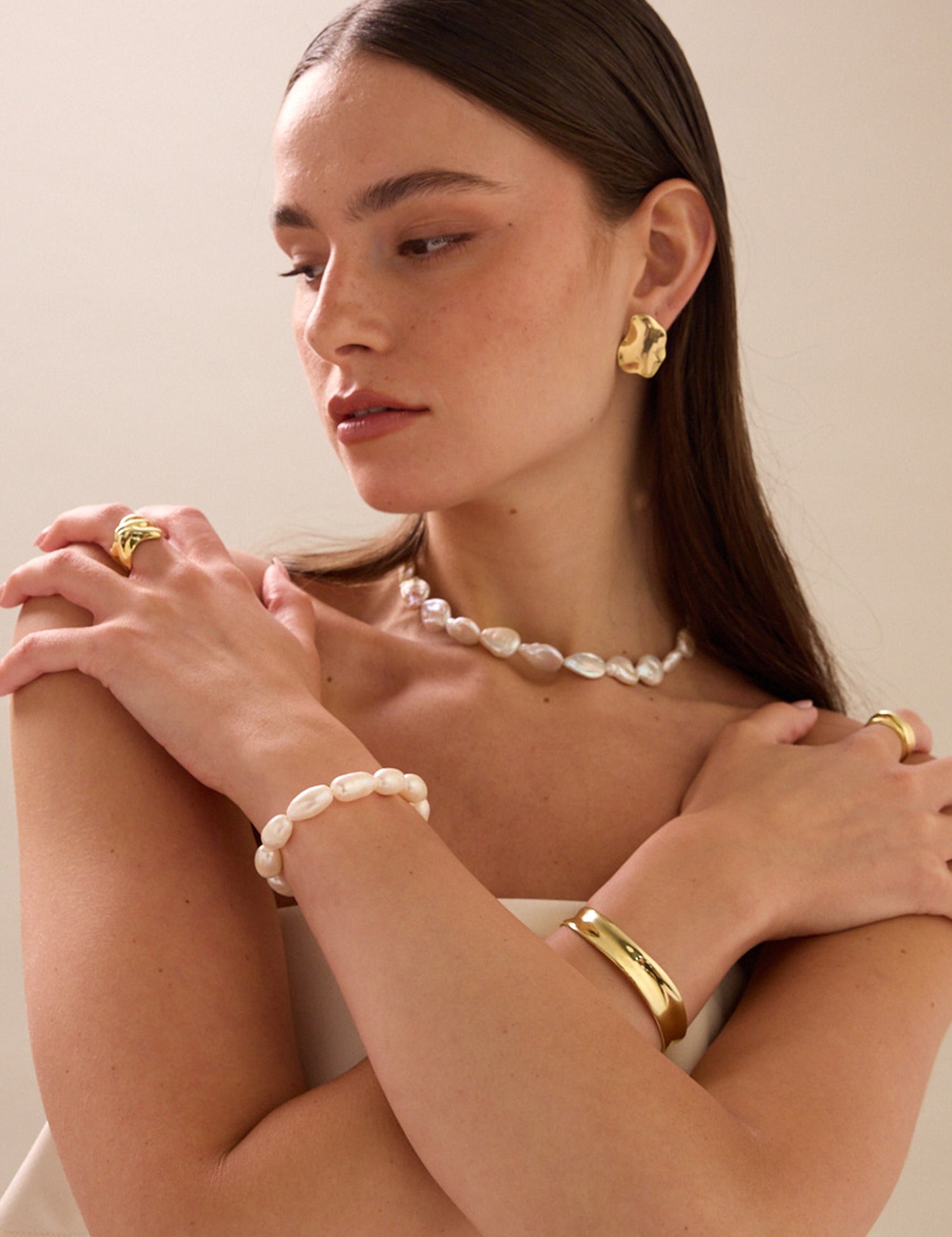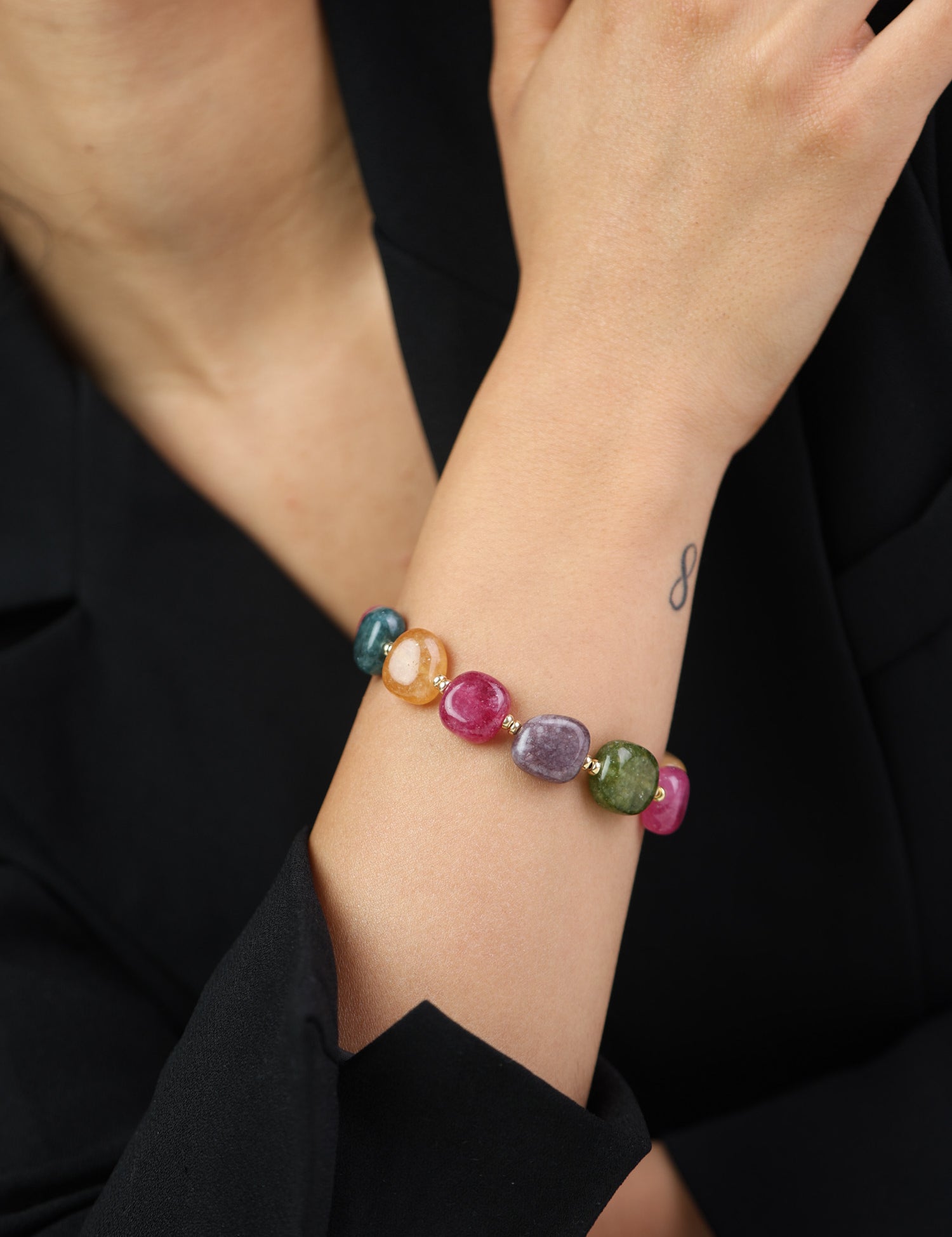 Pulseira de pedra, Banhado a Ouro, Quartzo de cultivo
