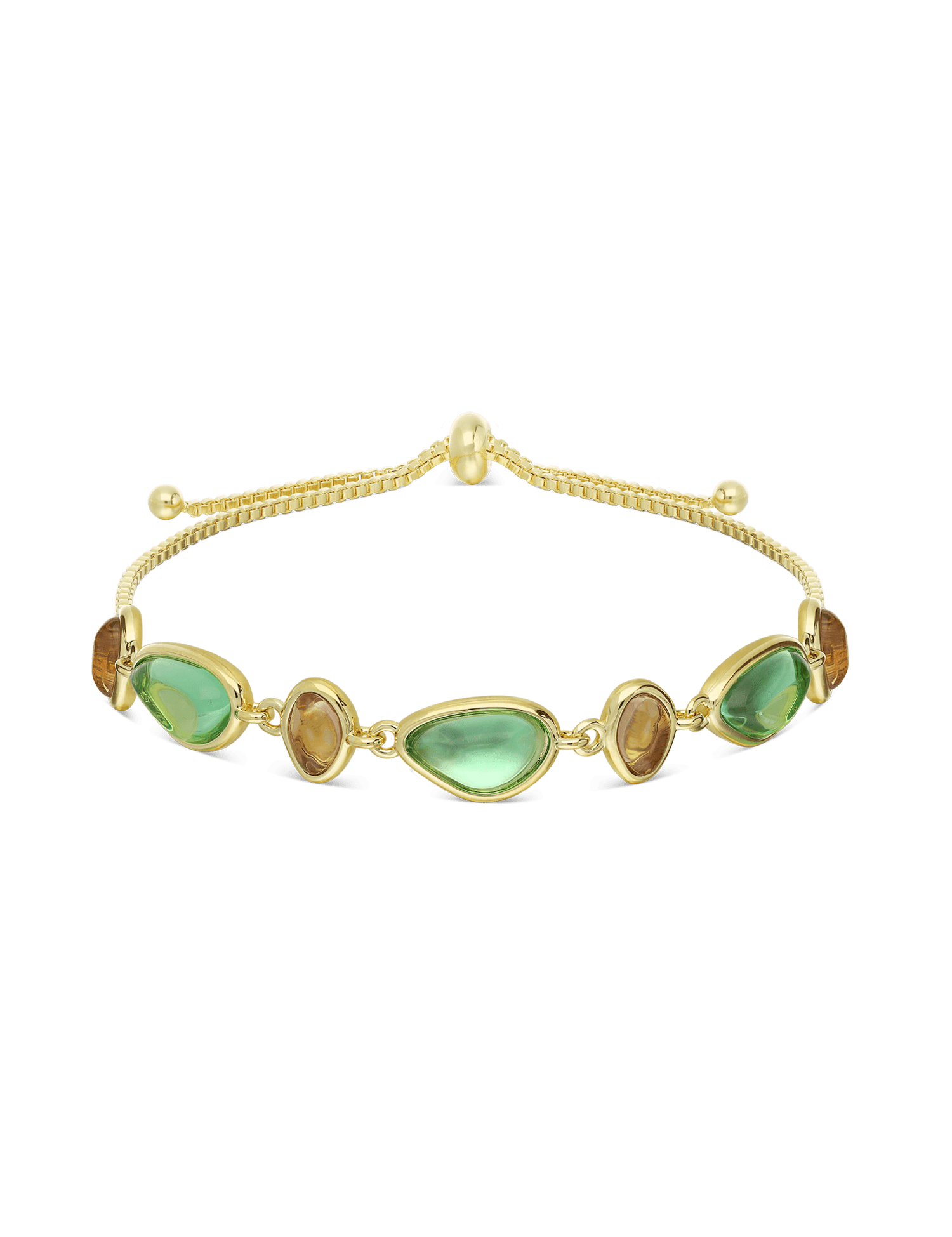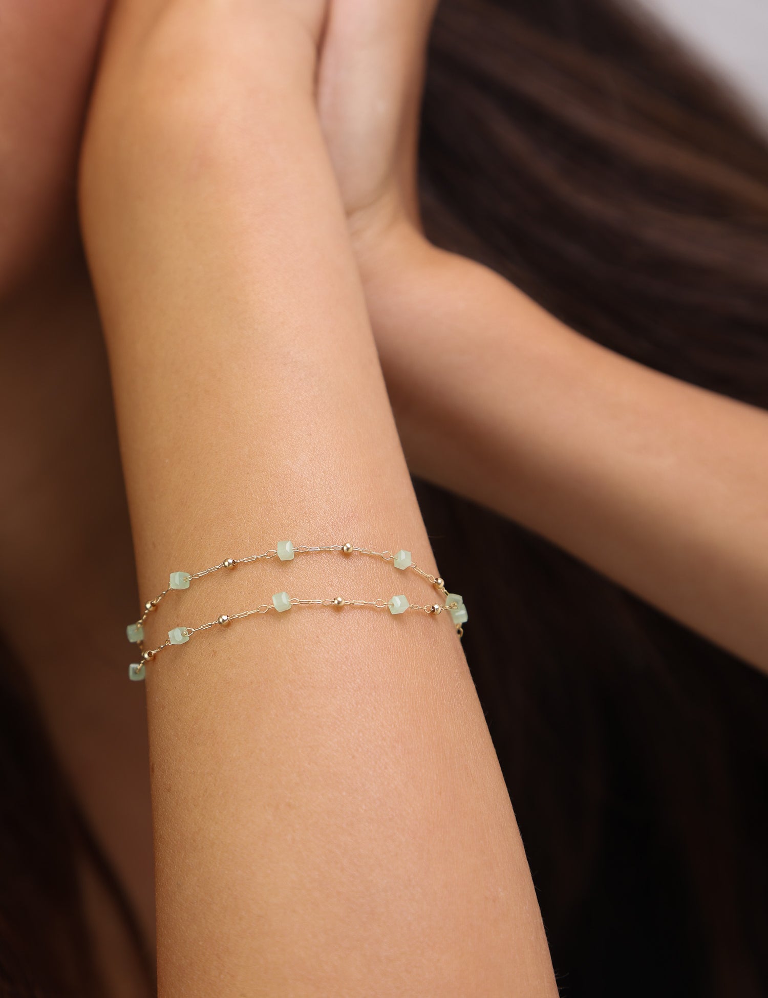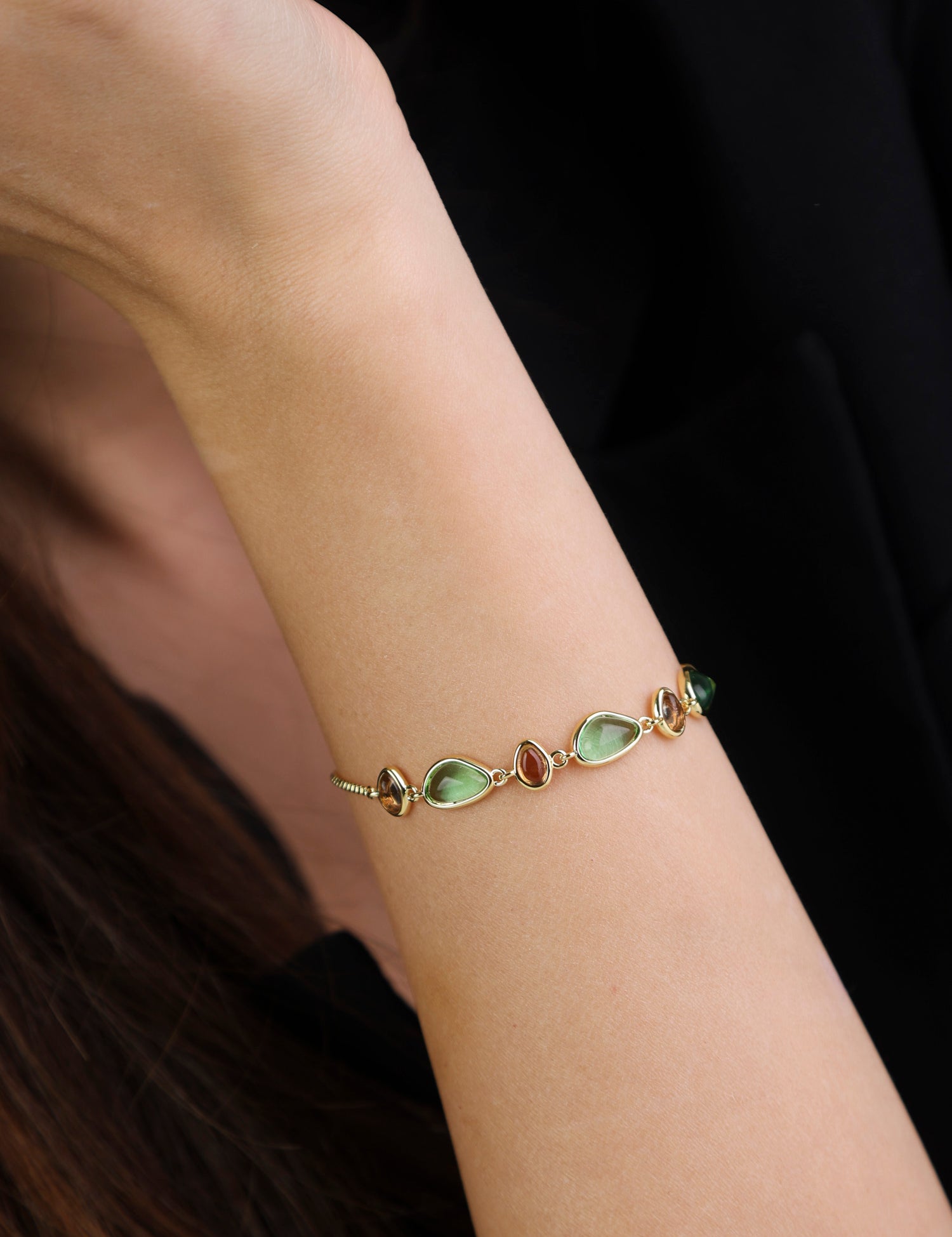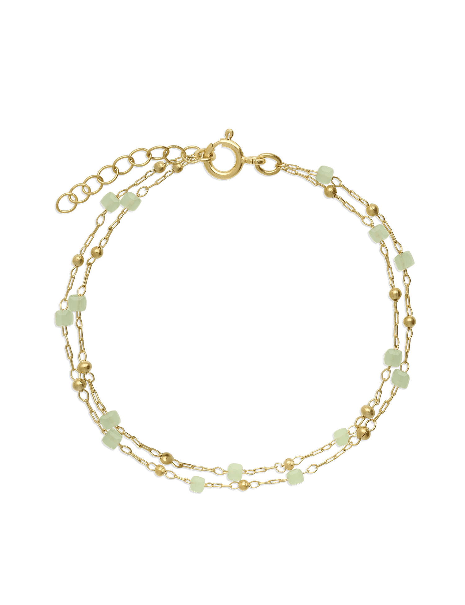 Pulseira delicada banhada a ouro com vidro cristal verde