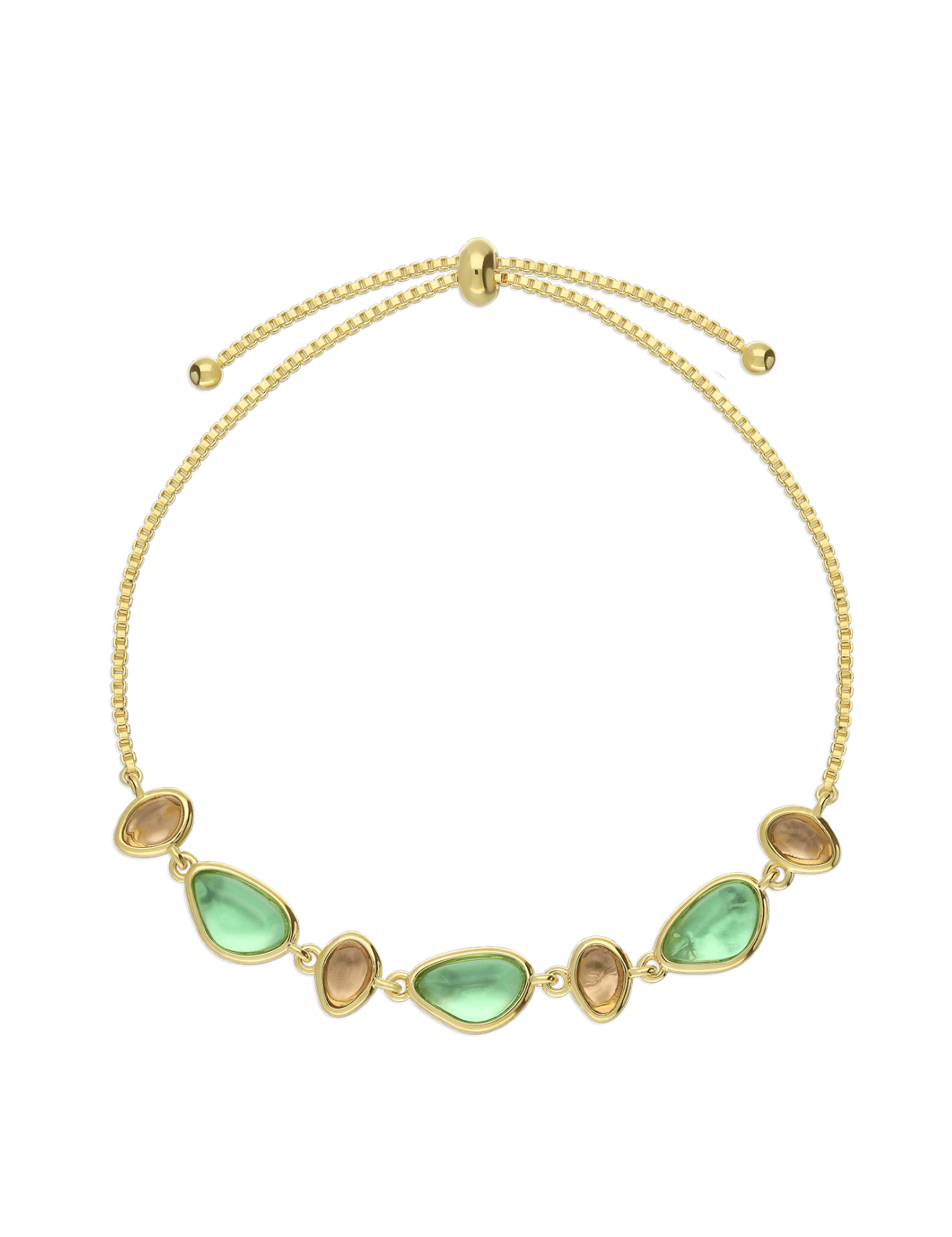 Pulseira de pedras banhada a ouro com jadeíte verde