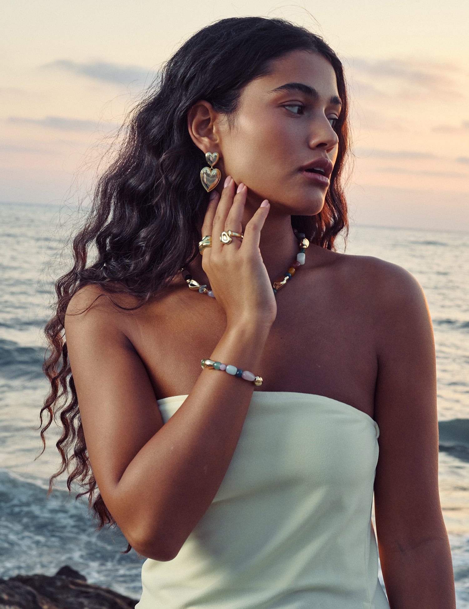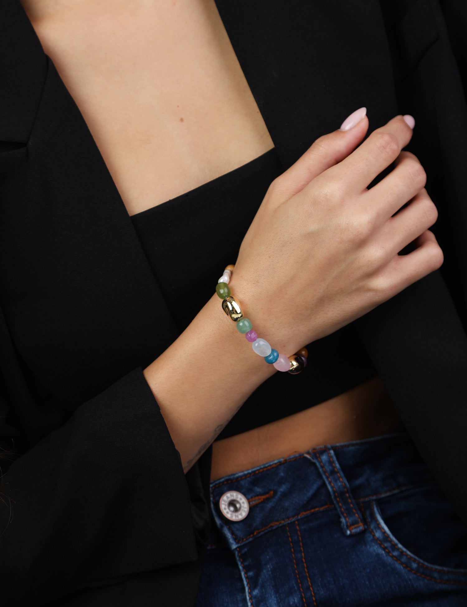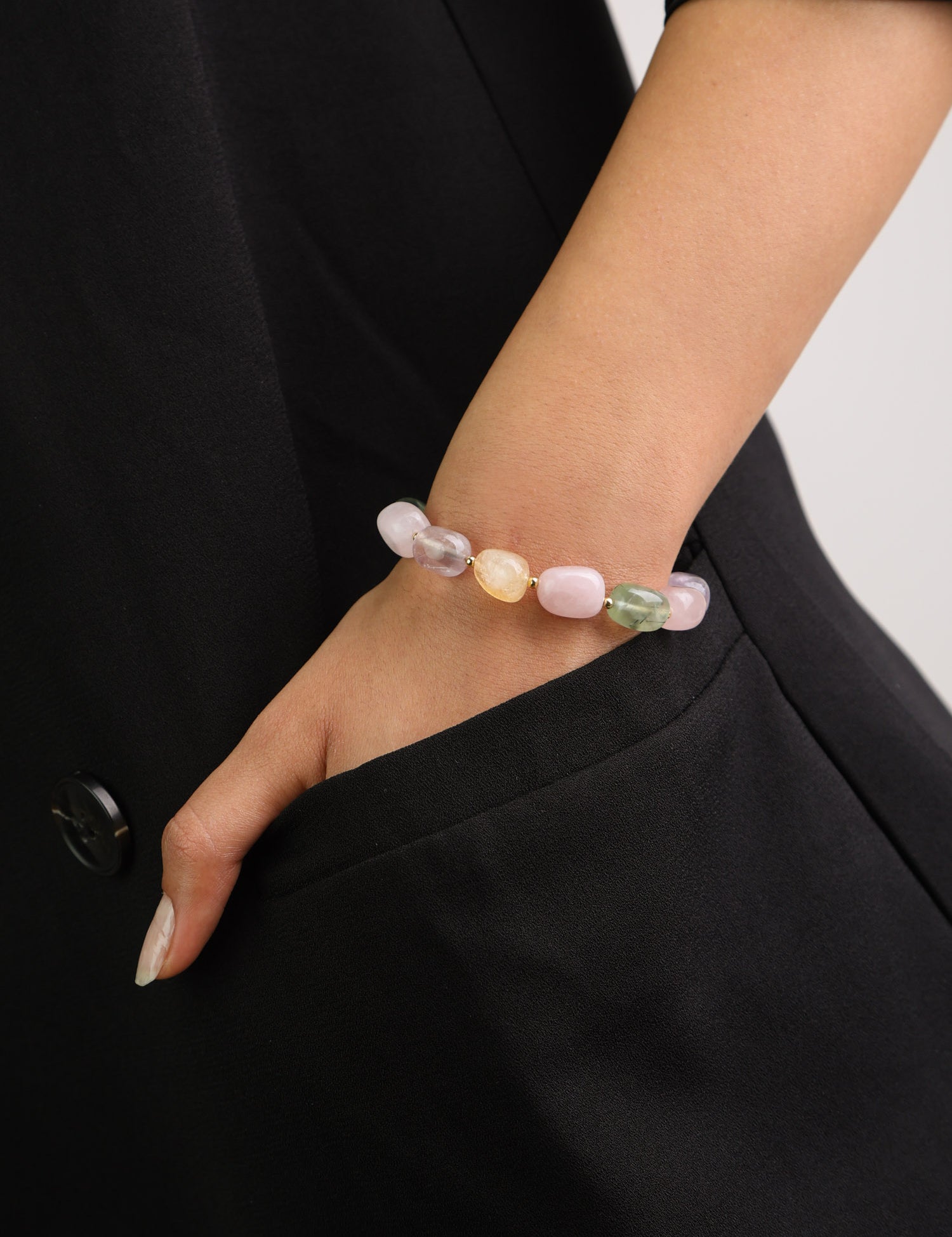 Pulseira de pedras banhada a ouro com aventurina, quartzo, cristal e labradorite