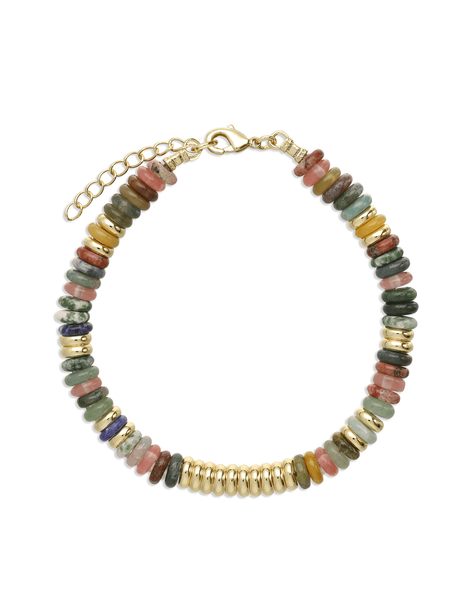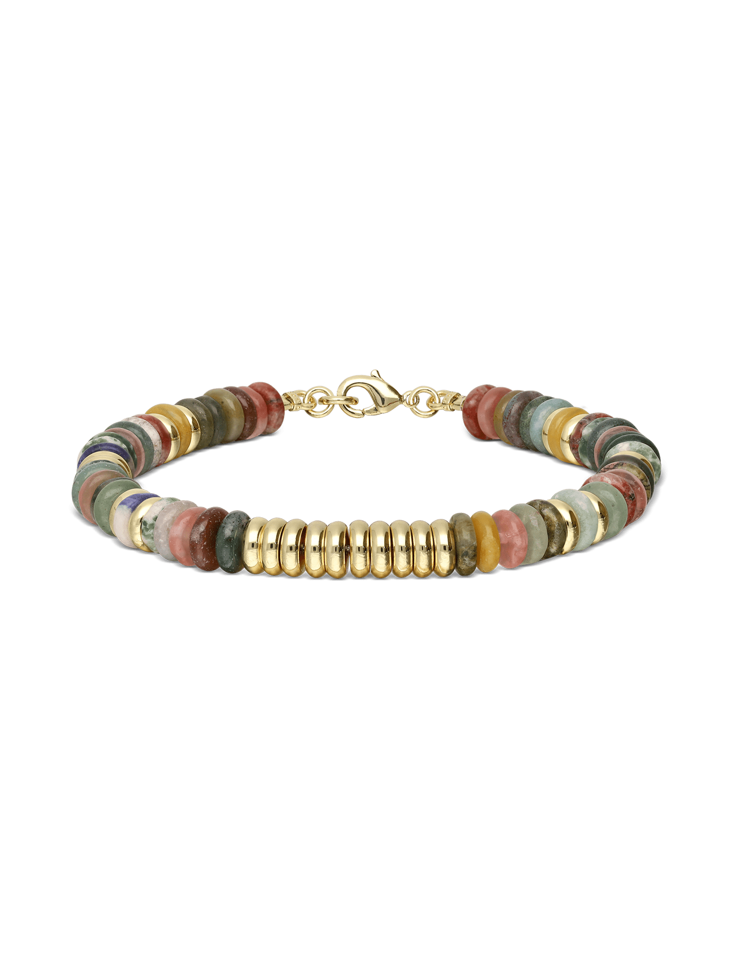 Pulseira de pedra banhada a ouro com ágata e jaspe