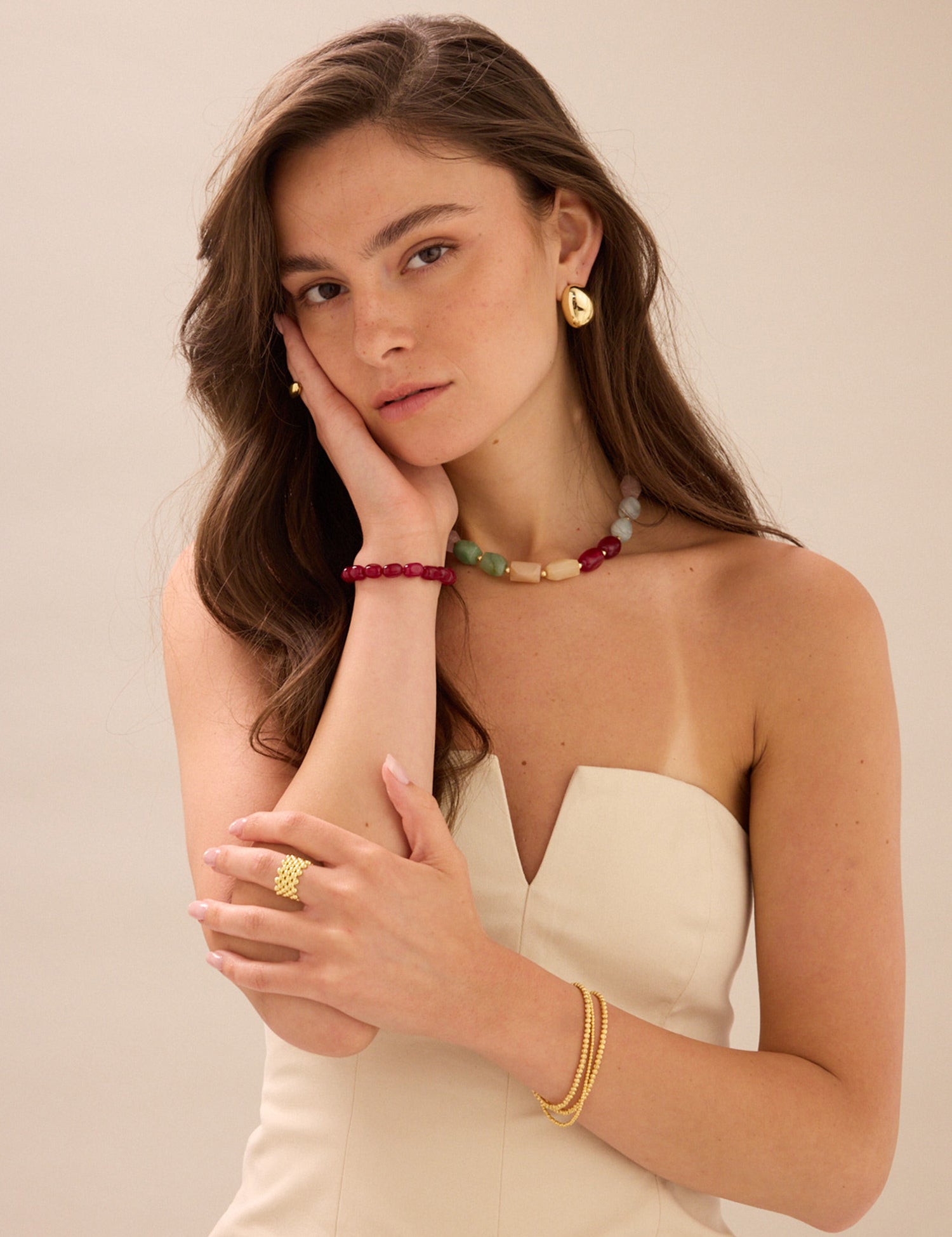 Pulseira de pedra banhada a ouro com quartzo vermelho