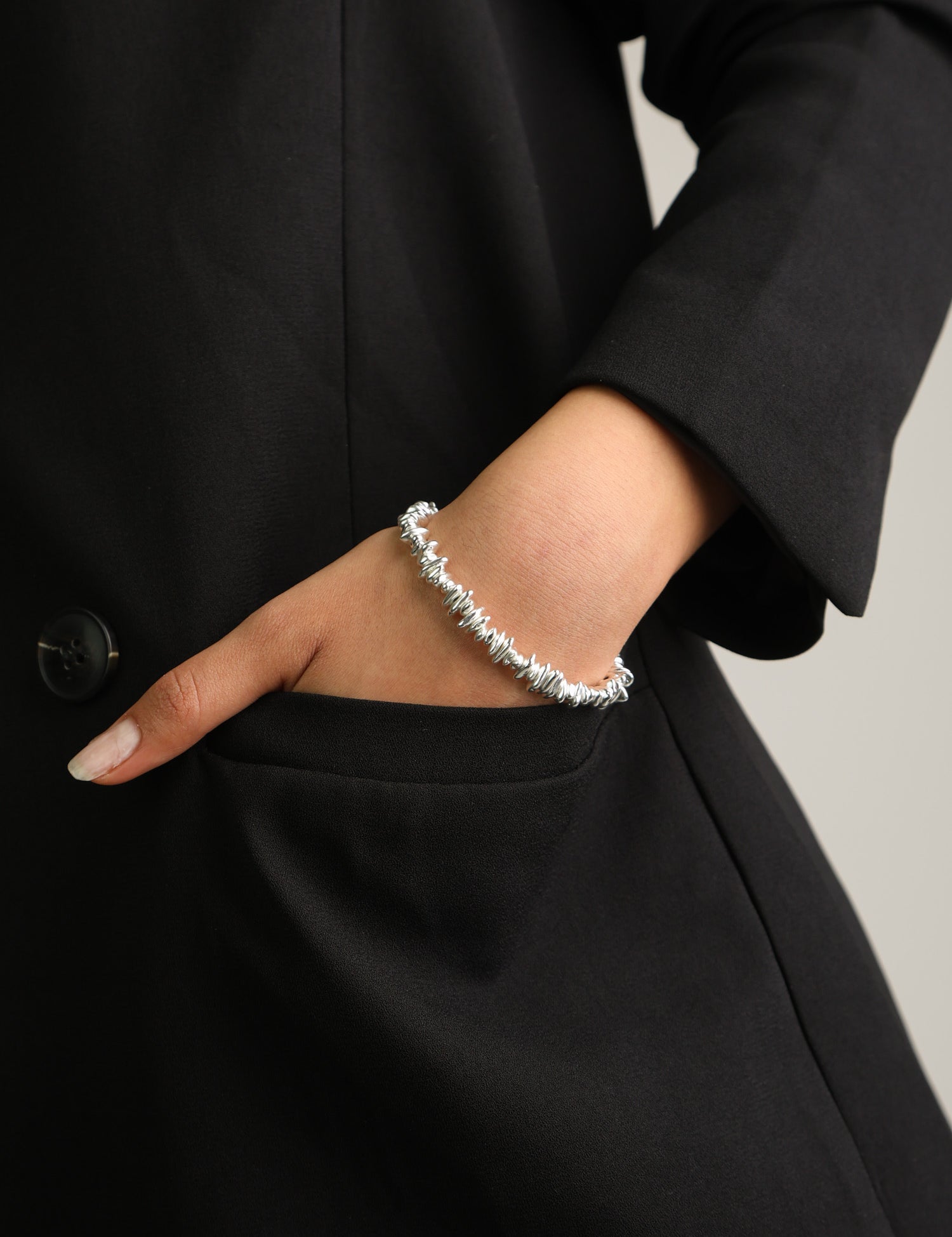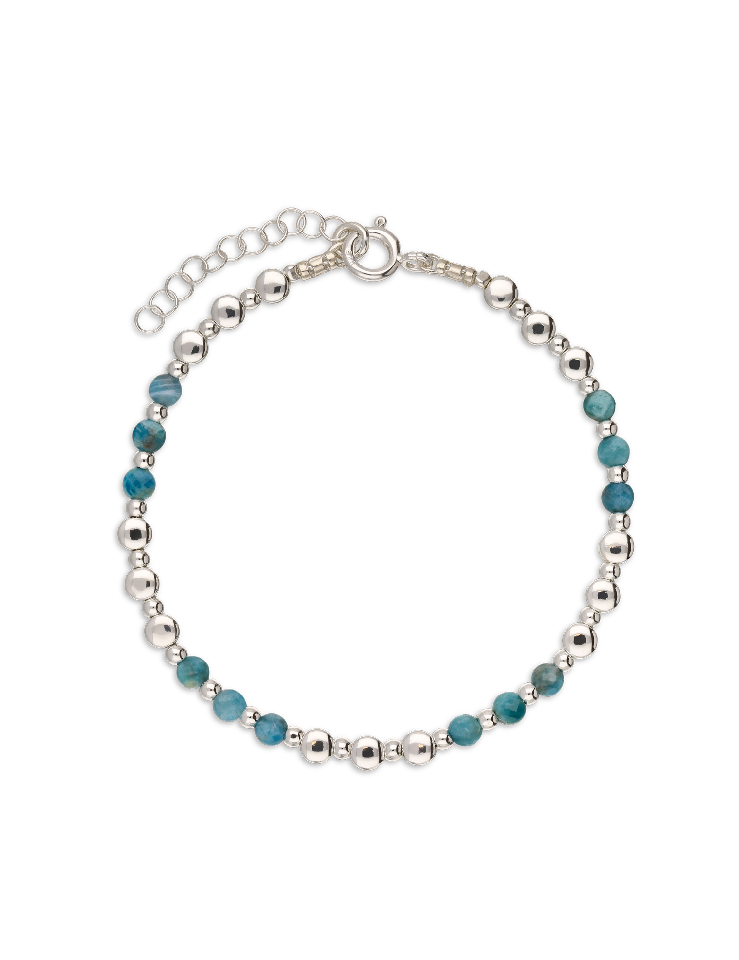 Pulseira em prata 925 com pedras de hematita com metais e apatite