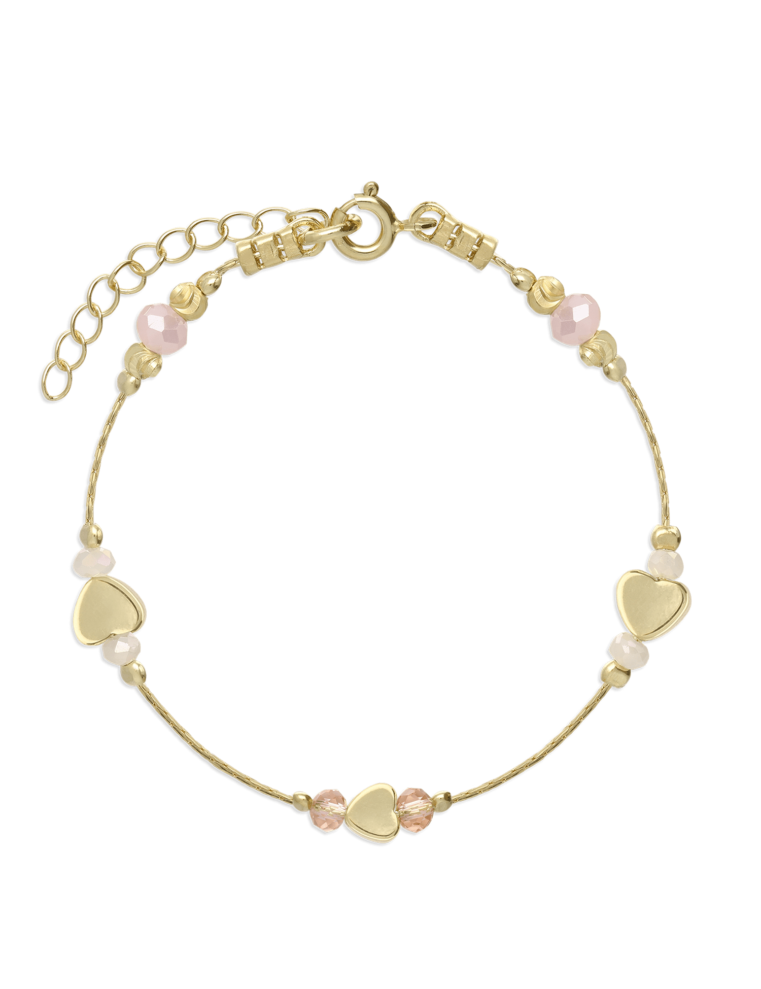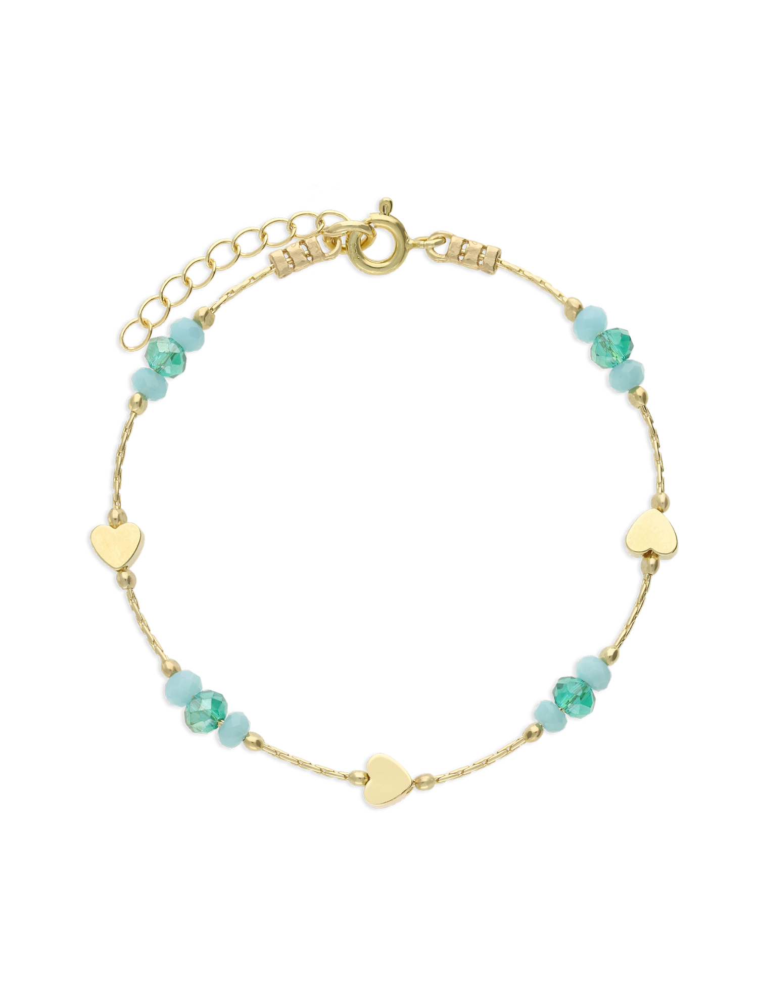 Pulseira corações banhada a ouro com cristais verdes