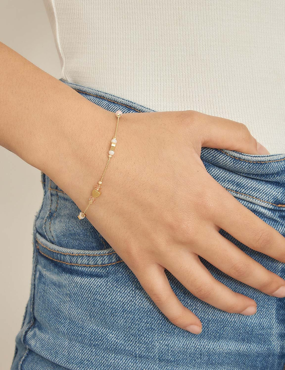 Pulseira delicada banhada a ouro com vidro cristal