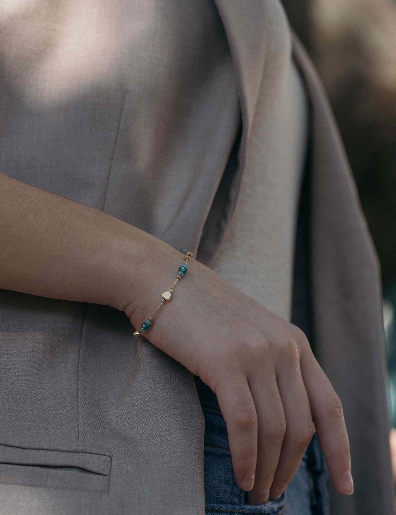 Pulseira banhada a ouro com opalite e cristais verde