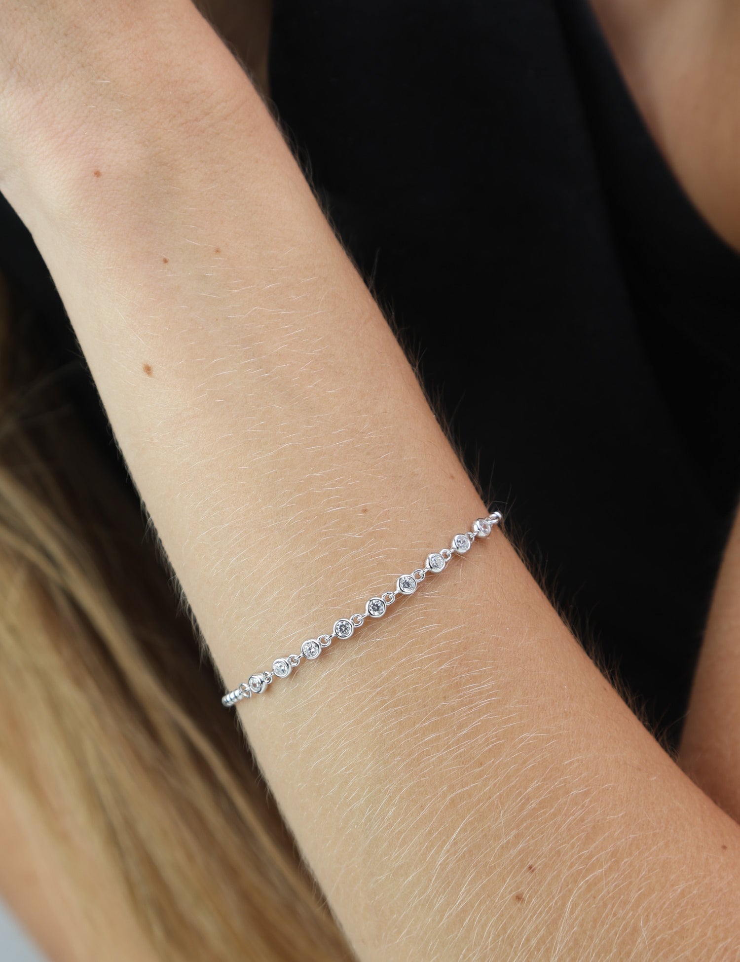 Pulseira delicada em prata 925 com zircônia