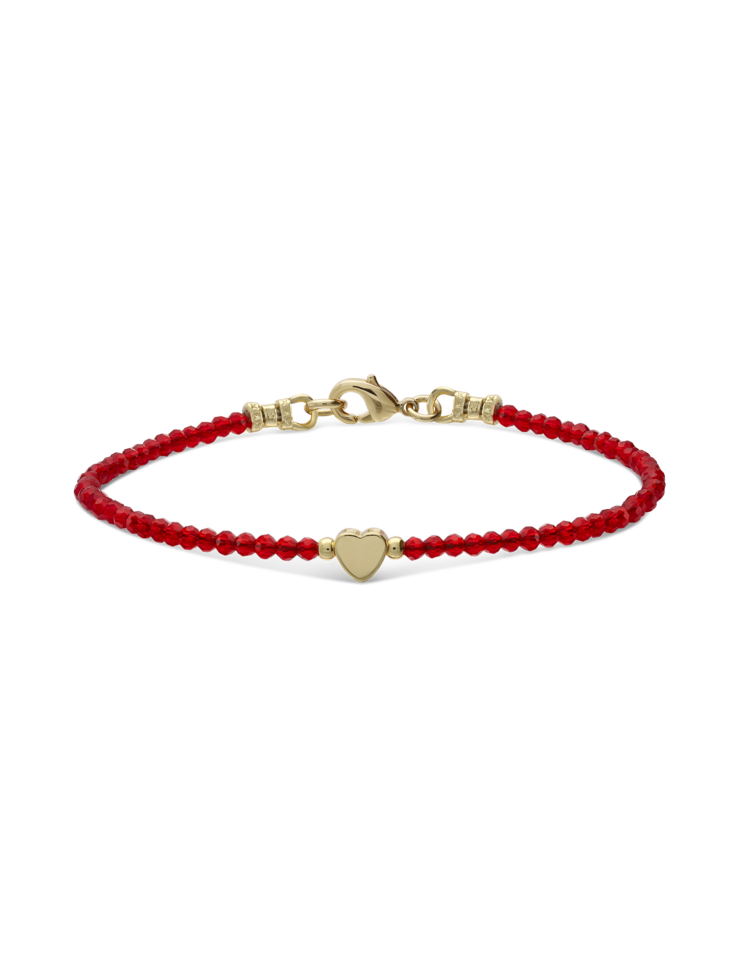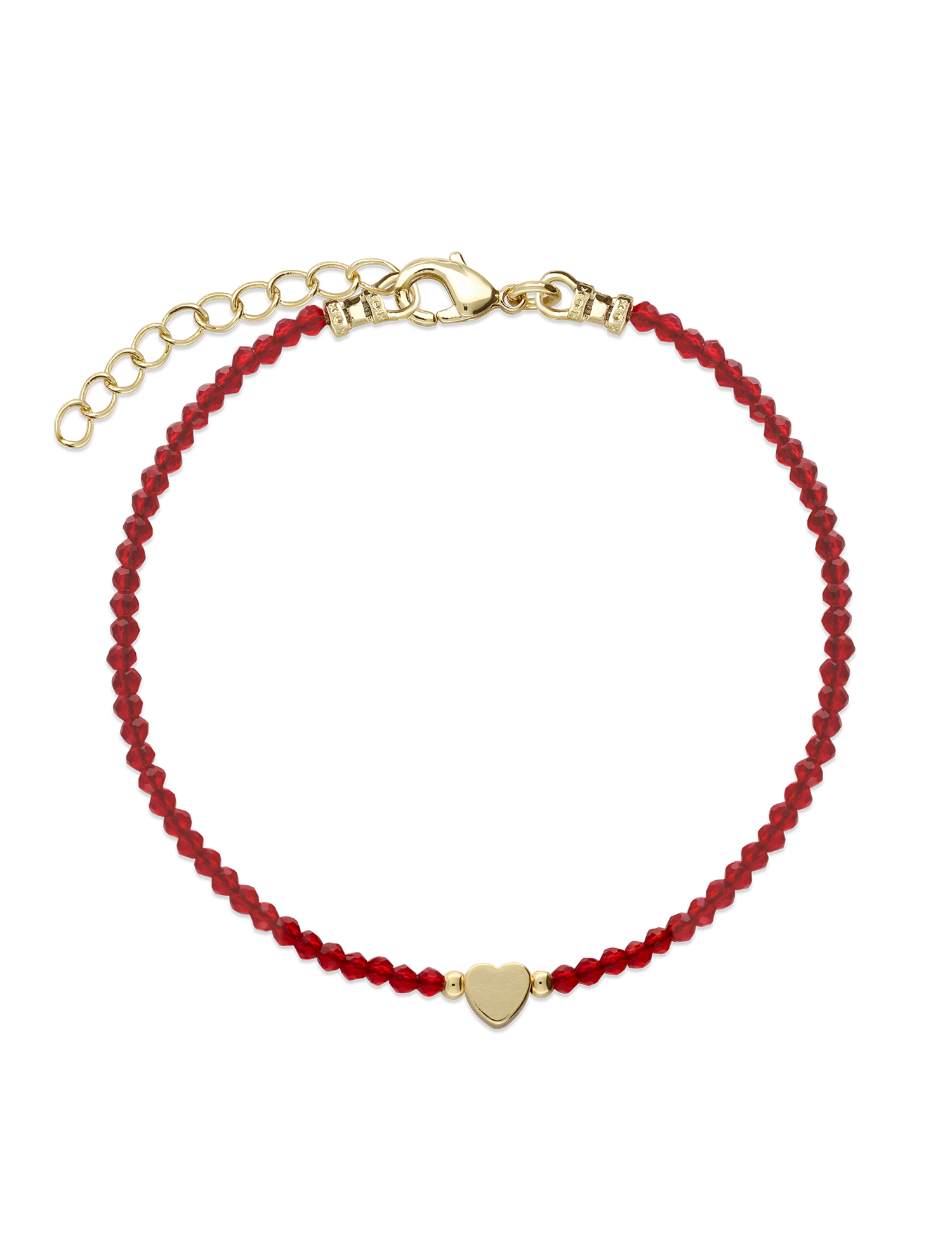 Pulseira coração banhada a ouro com cristais vermelhos