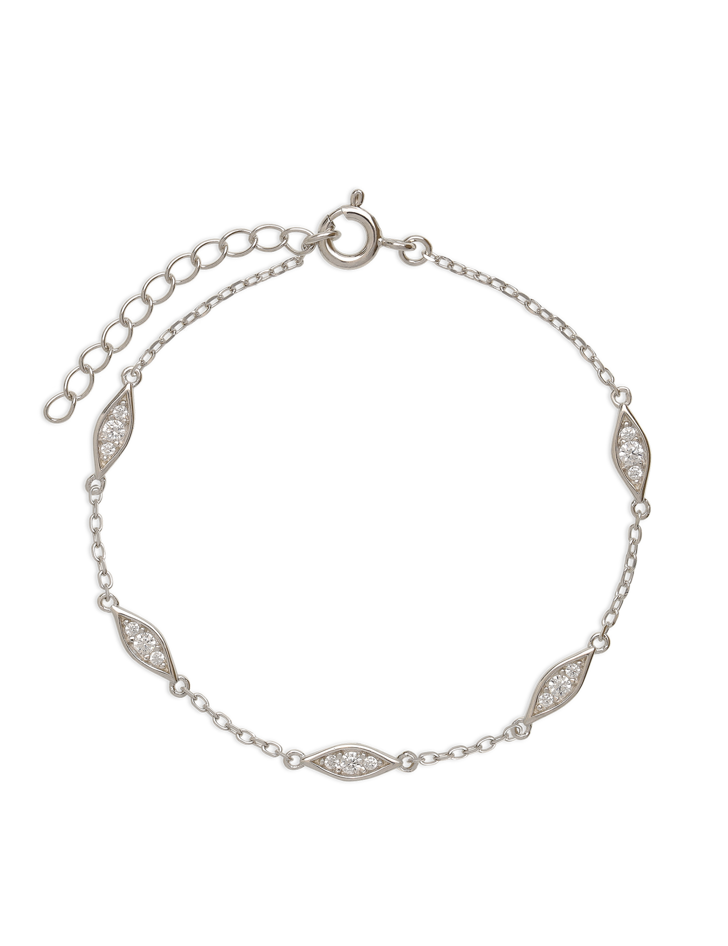 Pulseira delicada em prata 925 com zircônia e mão de fátima