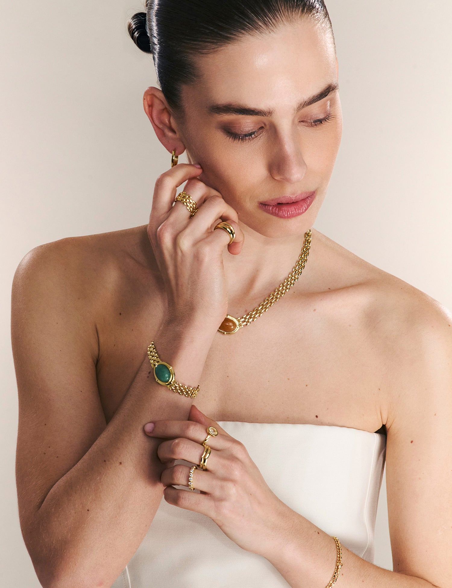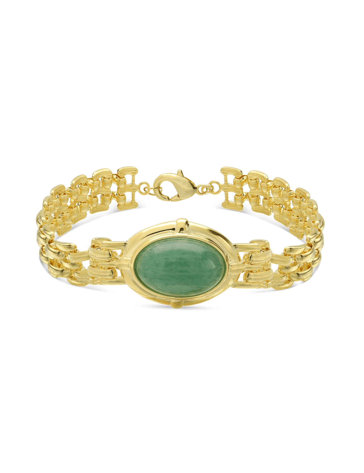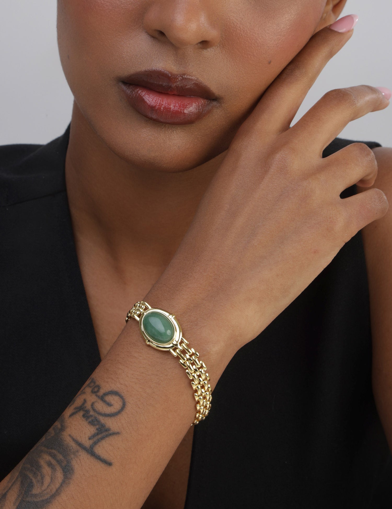Pulseira de corrente larga banhada a ouro com aventurina verde