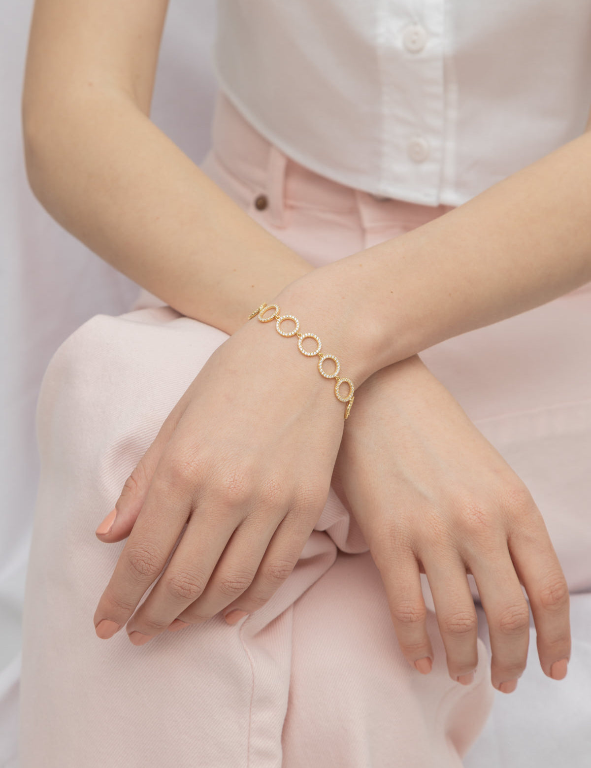Pulseira delicada em prata 925 banhada a ouro com zircónias