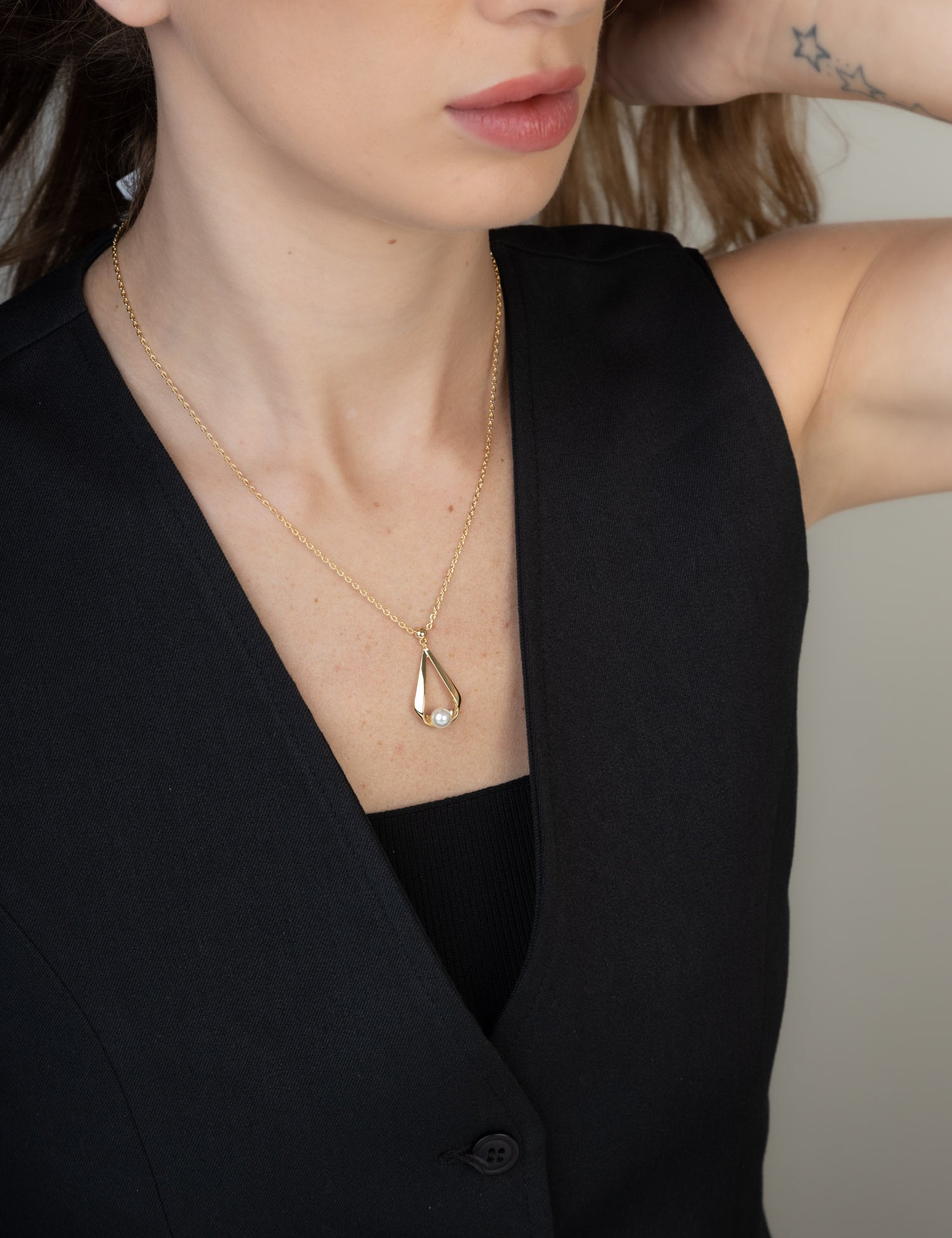 Colar banhado a ouro com pérolas