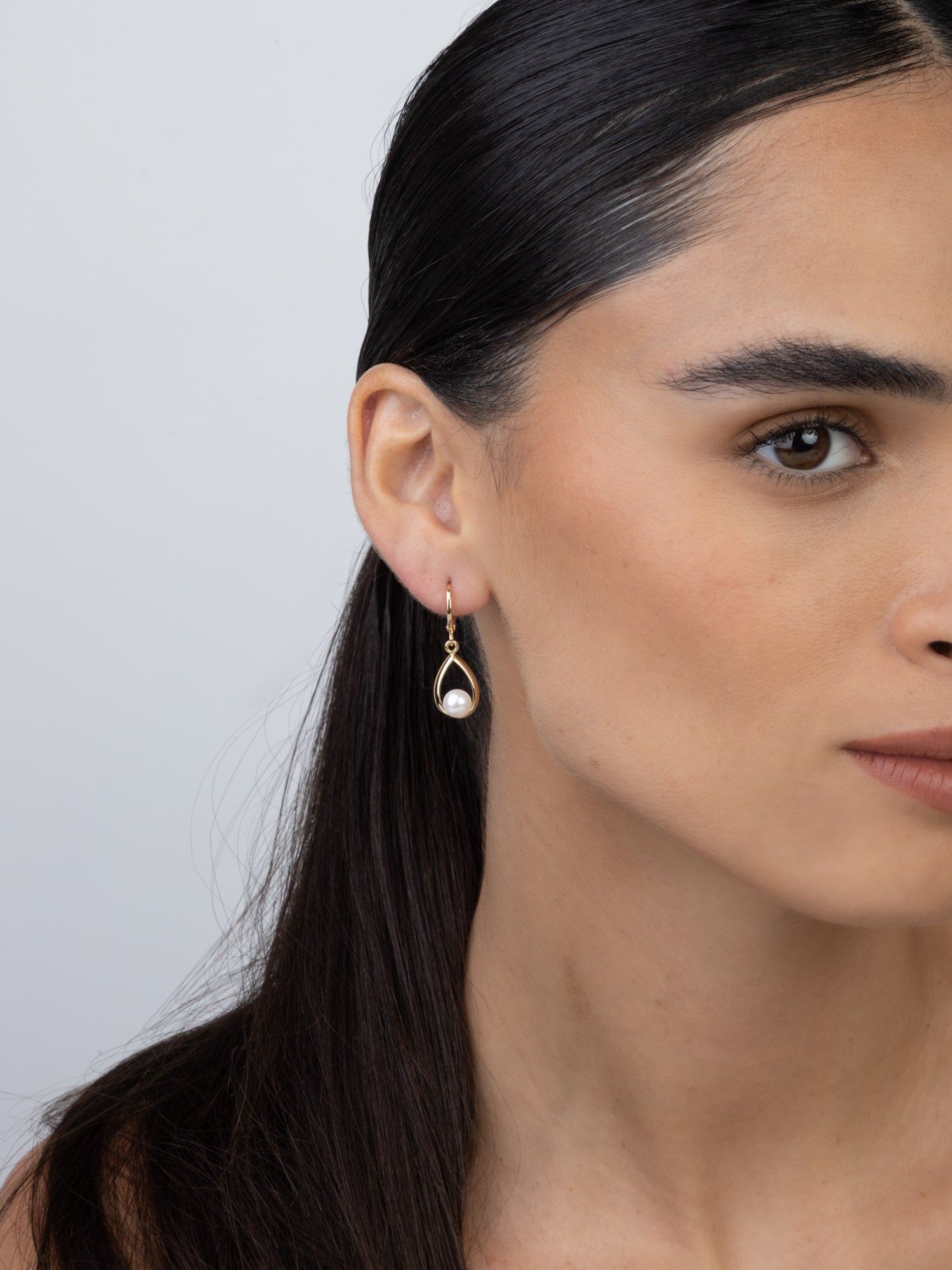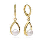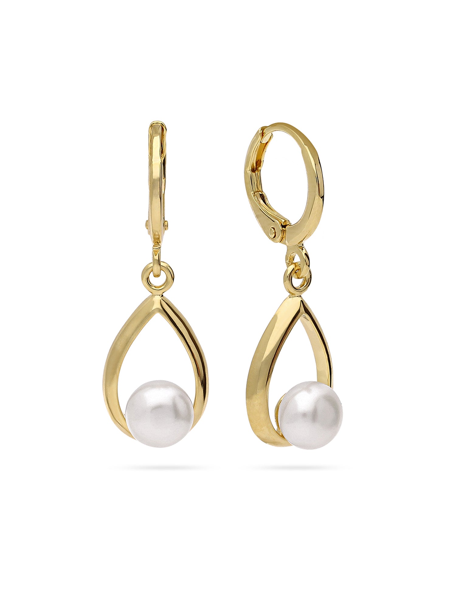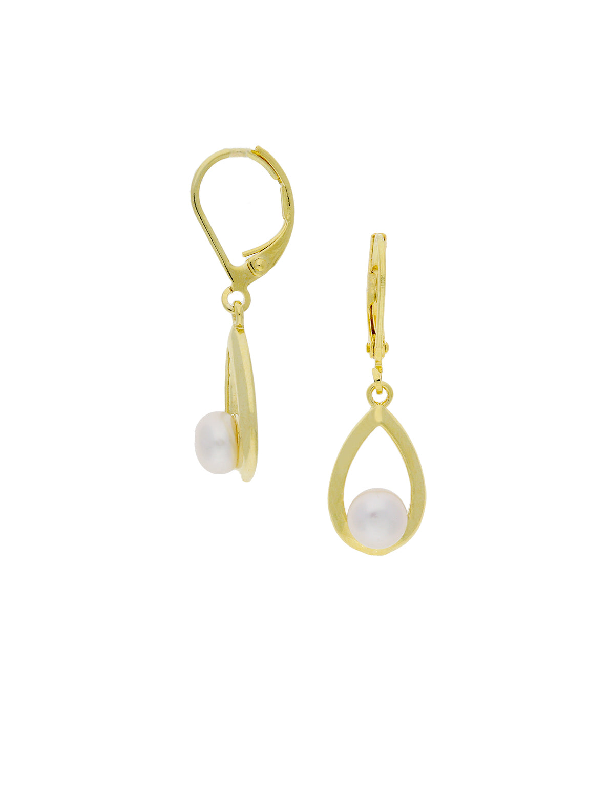 Pendentes, Banhado a Ouro, Pérola cultivada, Branco, Lágrima,, Dourado, comprimento do brinco: 3.0 cm, largura do brinco: 1.0 cm, 2.49 gramas.