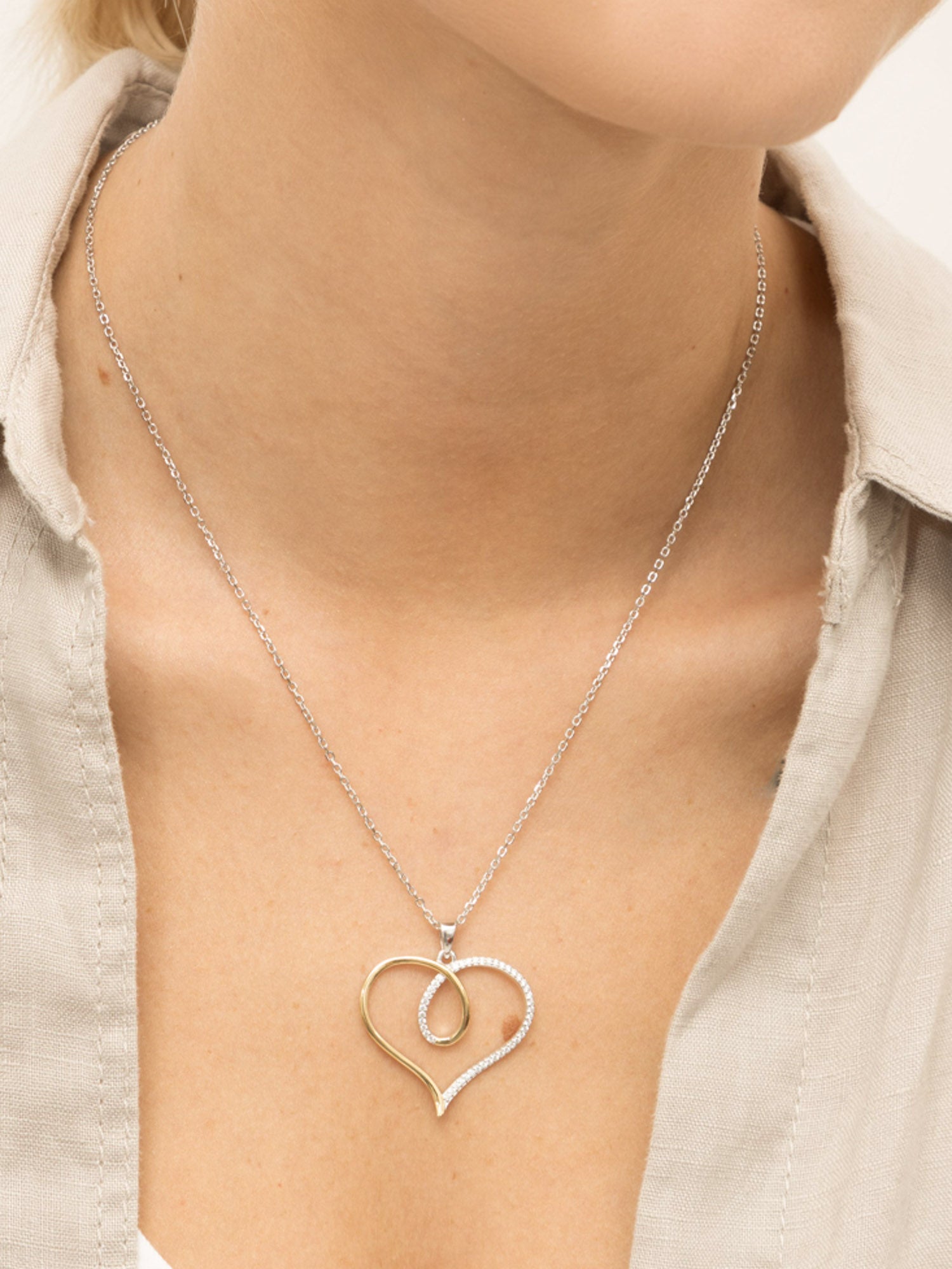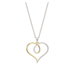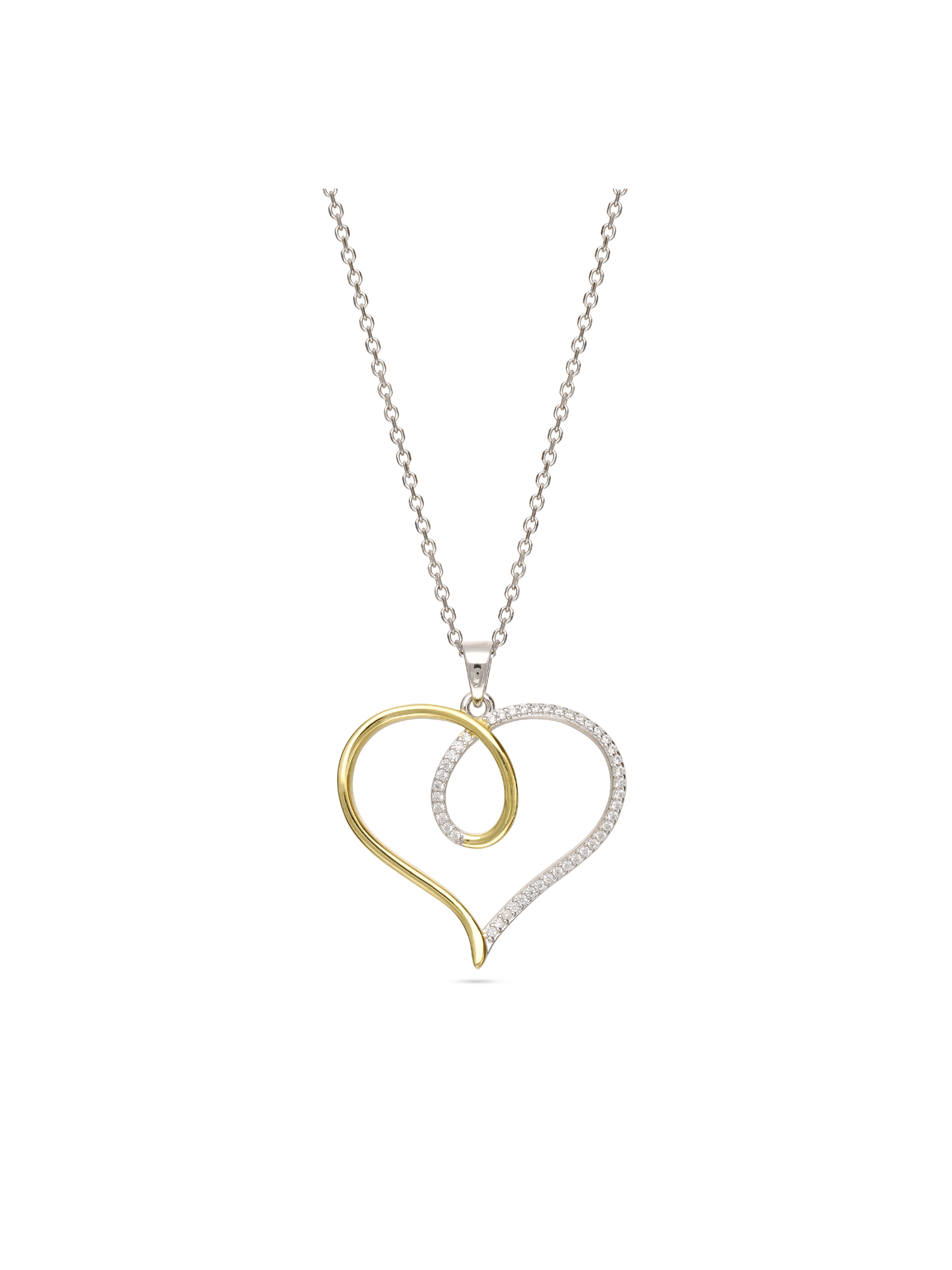 Fio com pendente, Prata 925 &Banhado a Ouro, Zircónia de cultivo, Claro, Coração, Feito à mão,, Dois tons, comprimento do pendente: 3.4 cm, largura do pendente: 3.1 cm, 4.90 gramas.